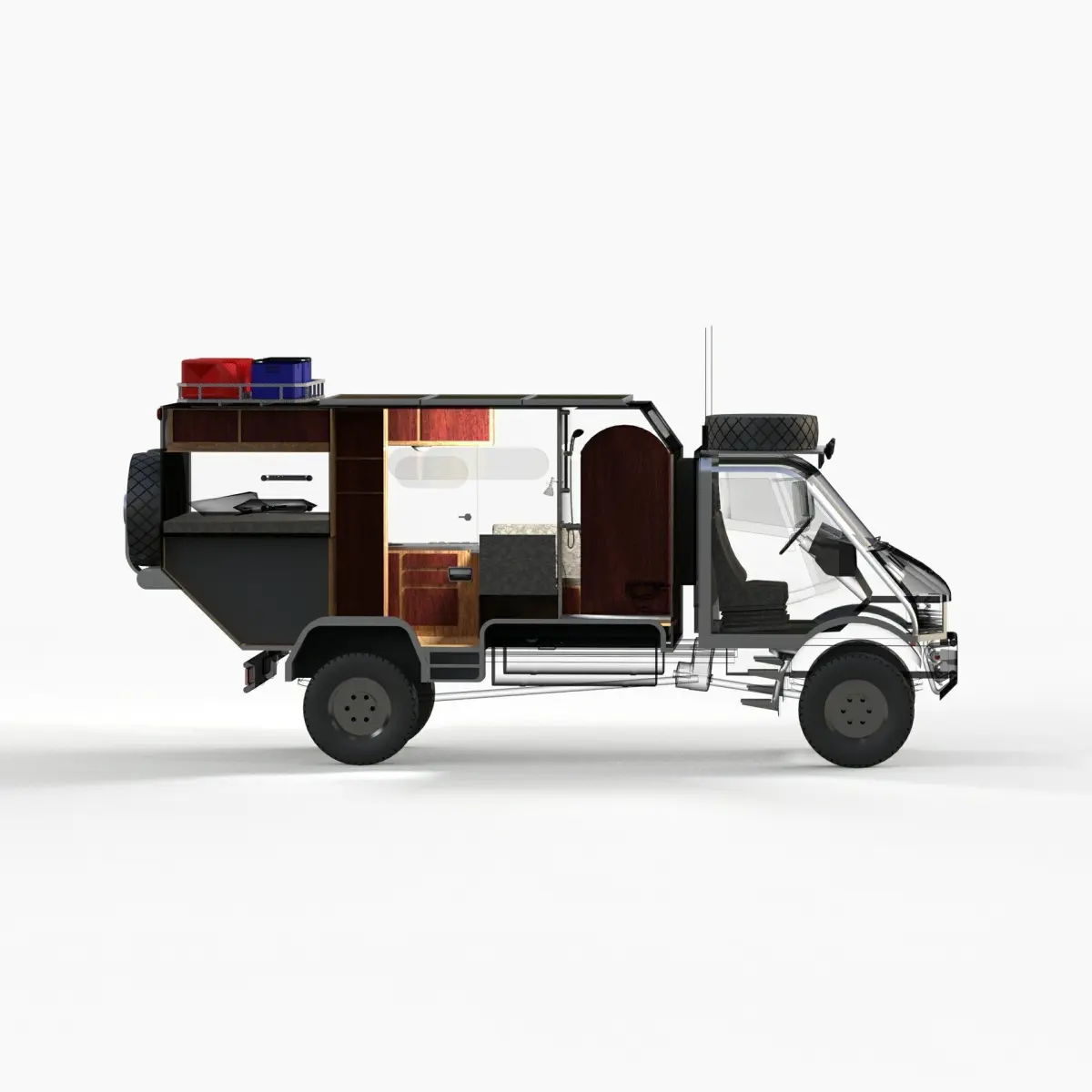 - Overlander Bremach T-Rex 4x4 camping vehicle with interiour.