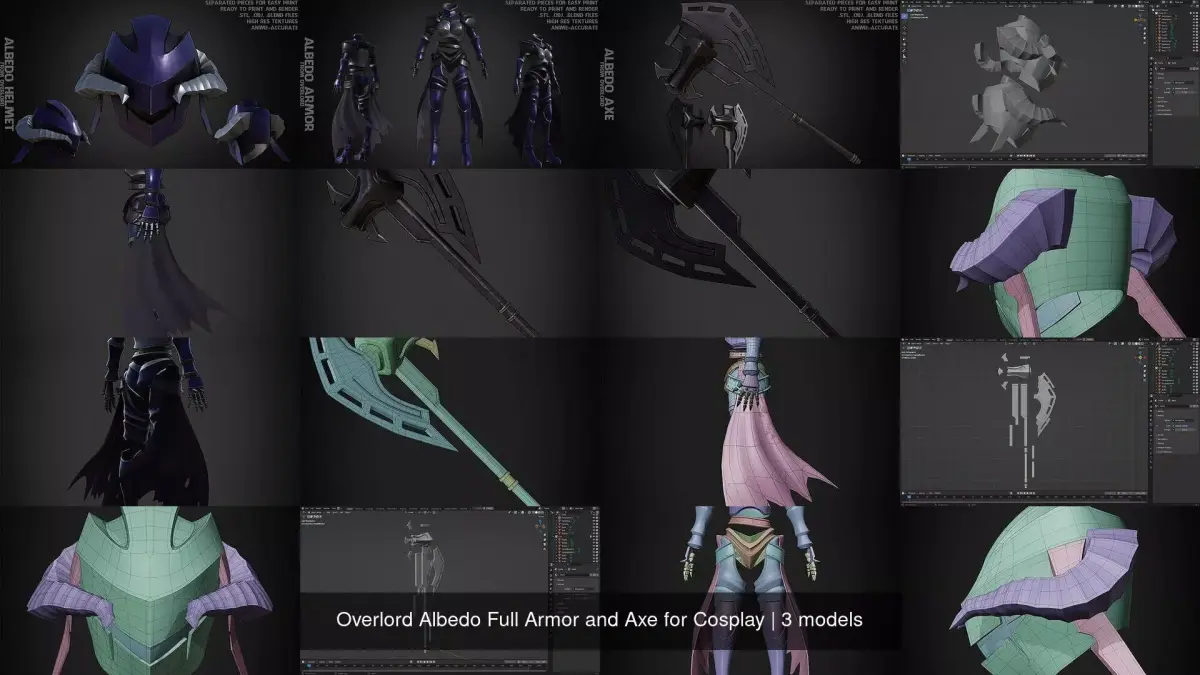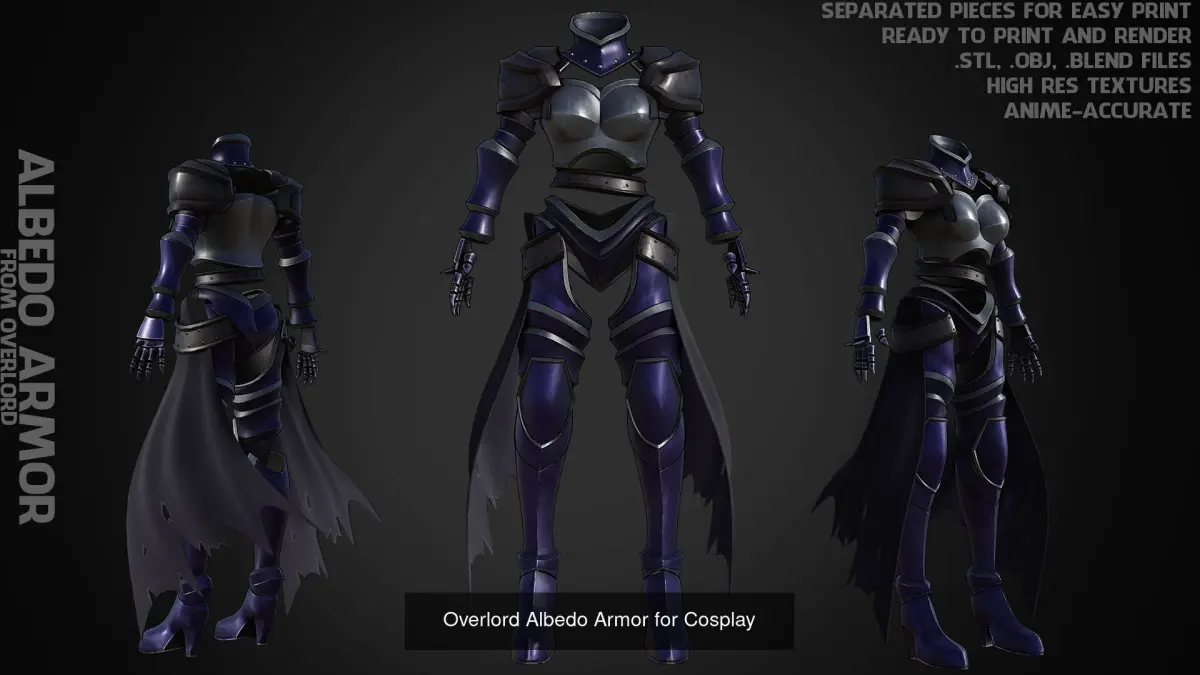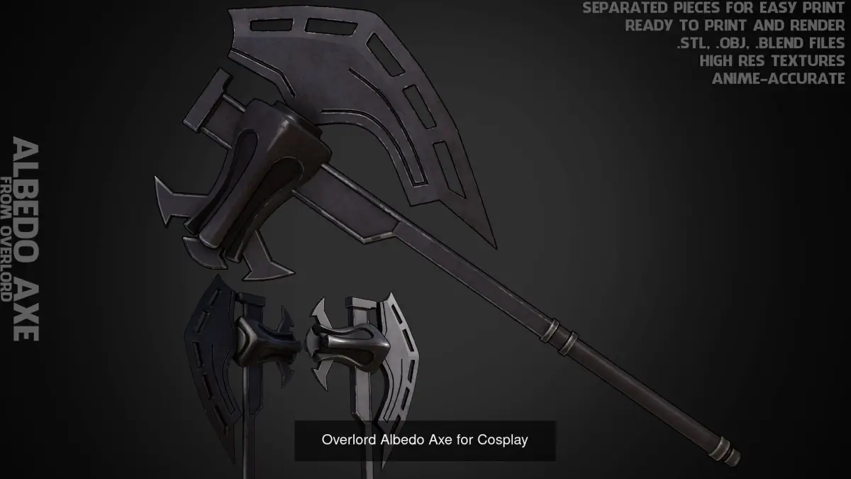 Albedo Full Armor and Axe from Overlord ready to print and render (anime-accurate) real-size