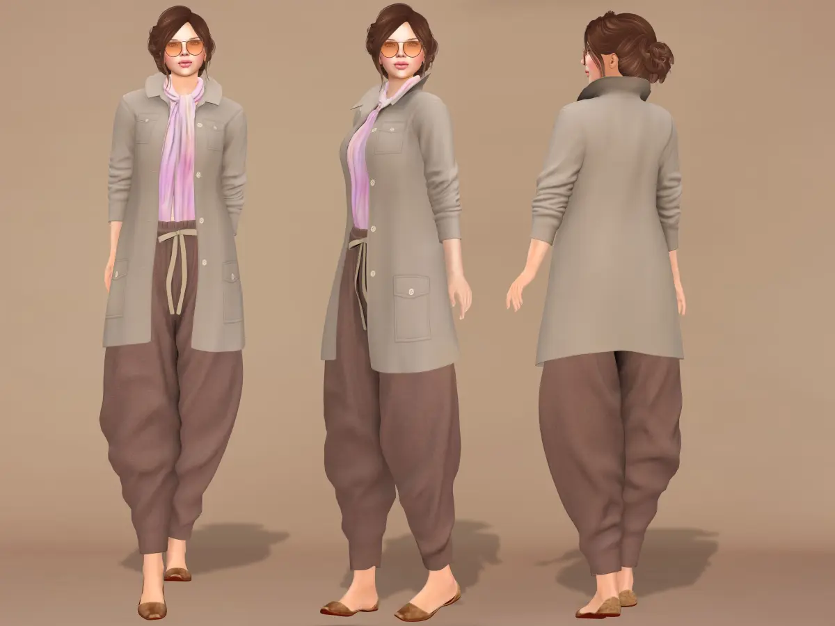 Oversize Baggy Harem Pants Coat Shawl Flats Full Outfit