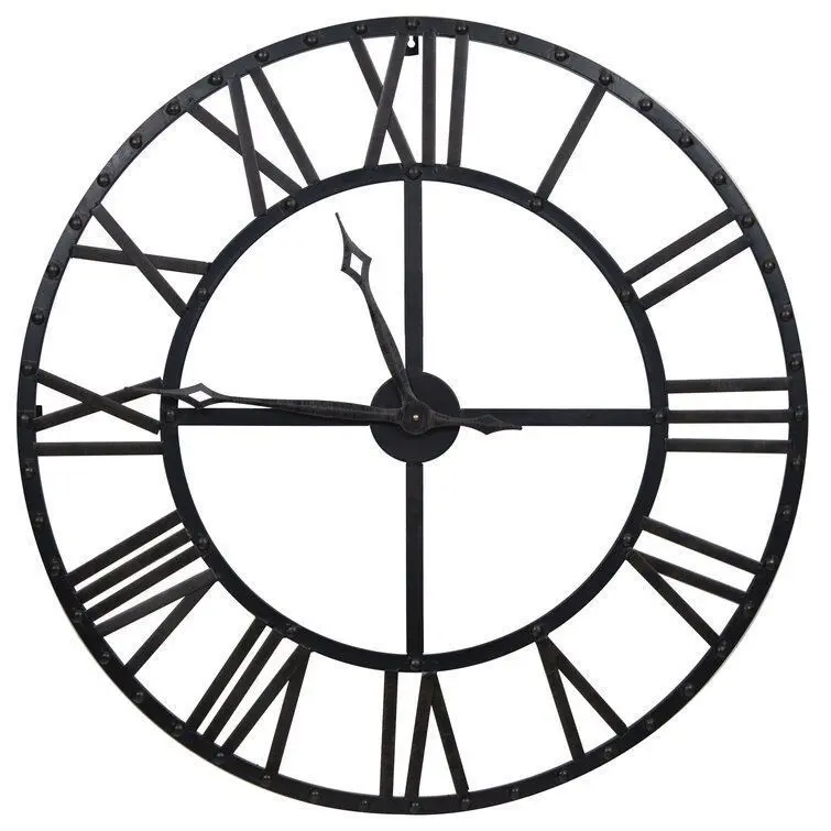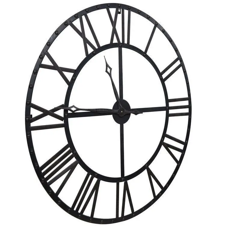- This oversized bronze 33.75" wall clock makes a classic focal point with traditional elements and modern flair. Crafted from metal, this cutout design offers rustic charm to any open wall. Roman numerals offer up antique-inspired style, and the artfully distressed black and bronze finish adds classic appeal that won't overwhelm your space