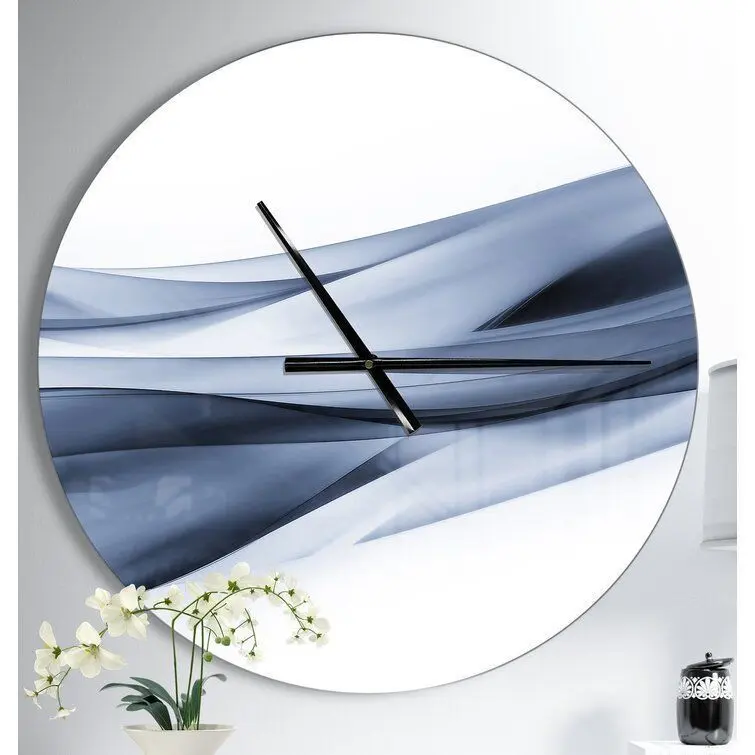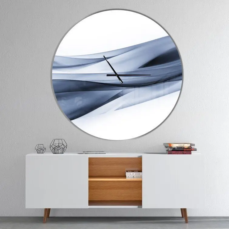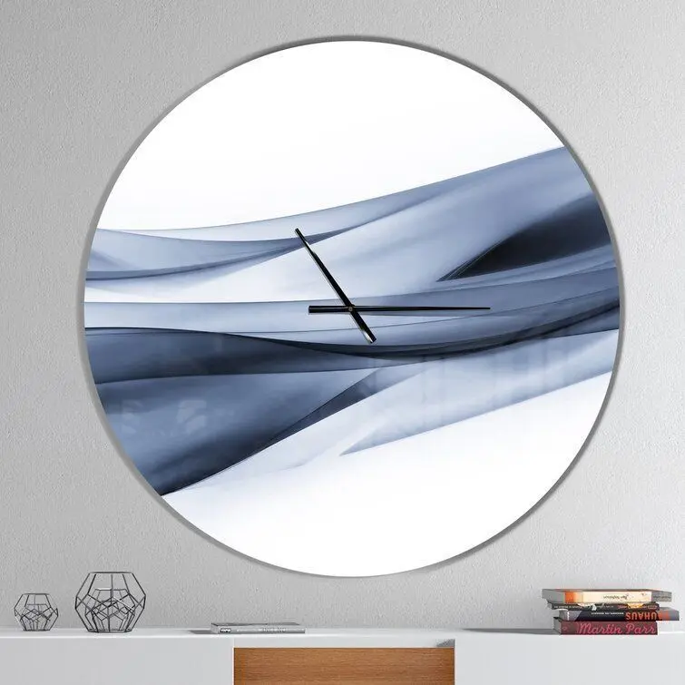 - Certainly not just for telling time, wall clocks are perfect for adding artful appeal to your kitchen wall or acting as a focal point above the living room mantel. Take this one for example: crafted from 100% solid aluminum, it showcases a highly reflective glossy finish and striking cool-hued and white abstract design, creating a sleek and modern look. This oversize design arrives ready to hang: simply insert the included AAA battery.