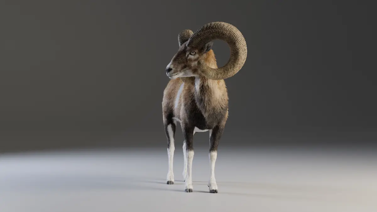 This is a high-quality male ovis ammon model with multiple 4K UDIM maps, fur, rigging, animations and a realistic muscle structure, and the complex hair system improves the realism of the hair. This model is made with Blender3.4 and Cycles renderer at real-world scale.