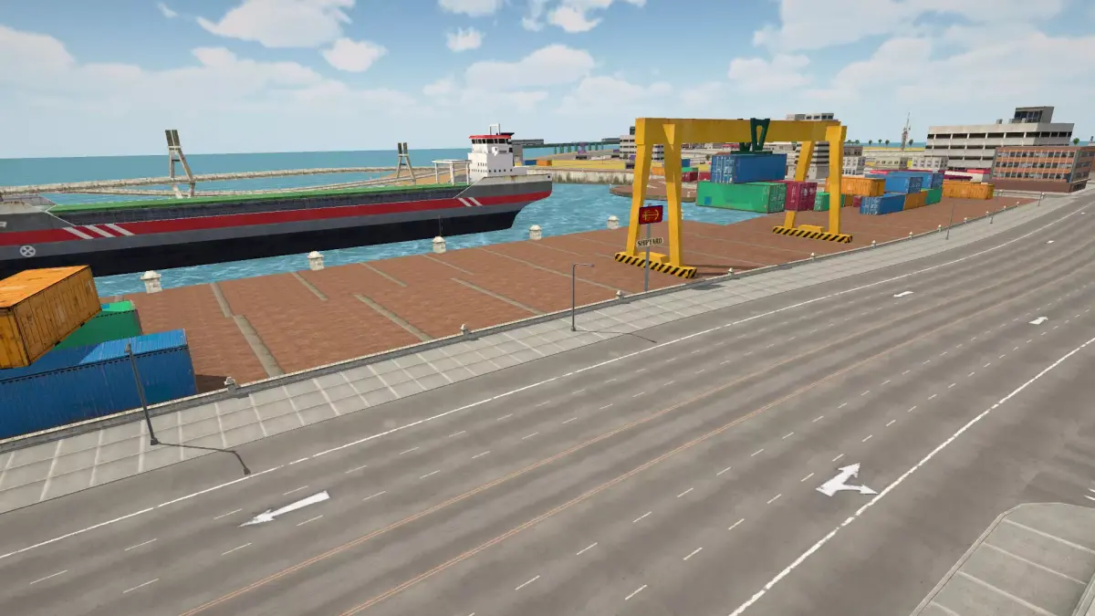 Dockyard / Seaport (cargo containers, cranes, ships, dock props)