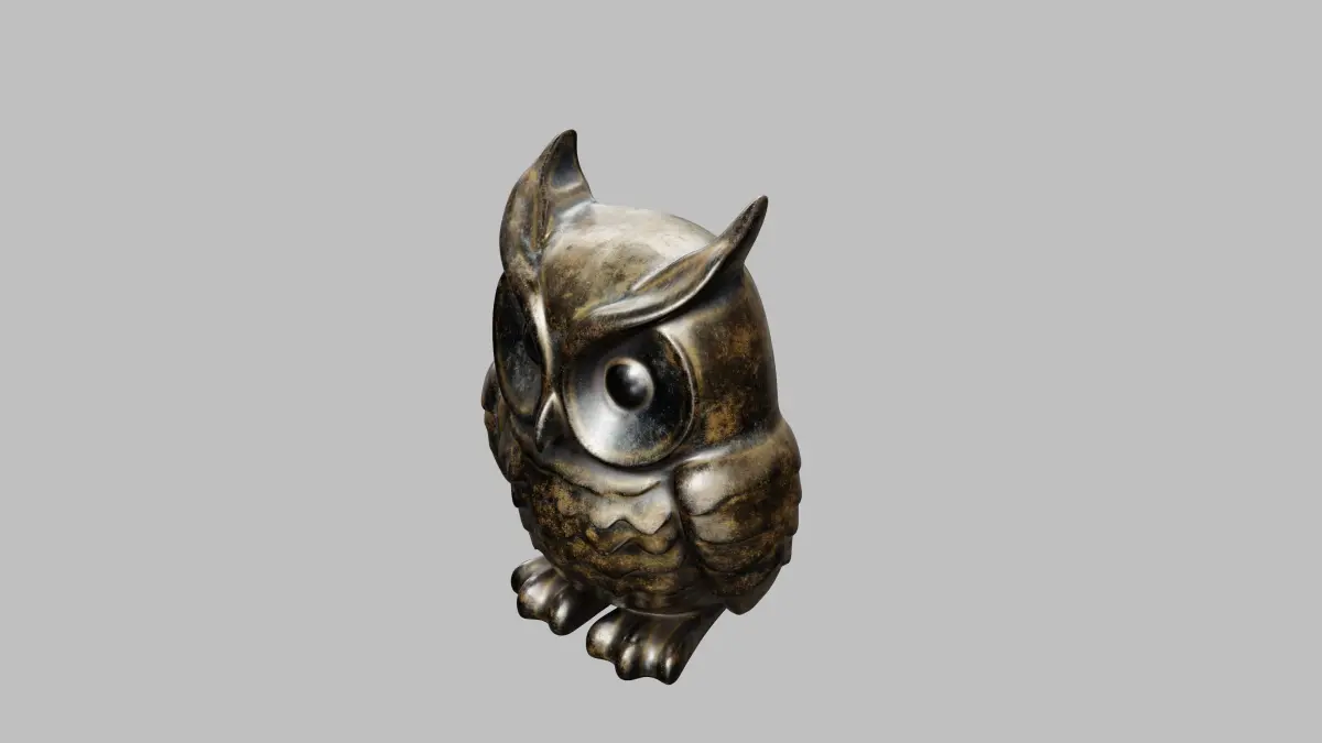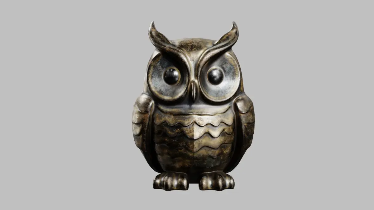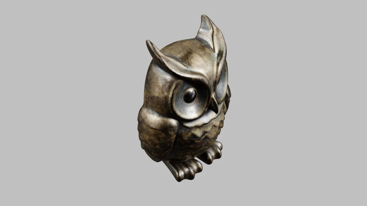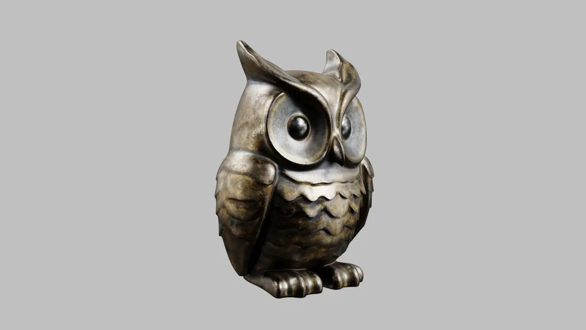 Introduce a touch of wisdom and nocturnal charm to your interior visualizations with this meticulously crafted 3D model of an owl figurine. This detailed piece captures the captivating presence of an owl, rendered with a beautiful, aged metallic finish. The model boasts ultra-high resolution 8K textures that reveal intricate details and realistic surface variations, making it a visually stunning addition to any virtual environment.