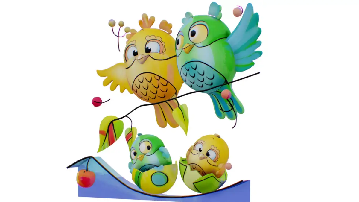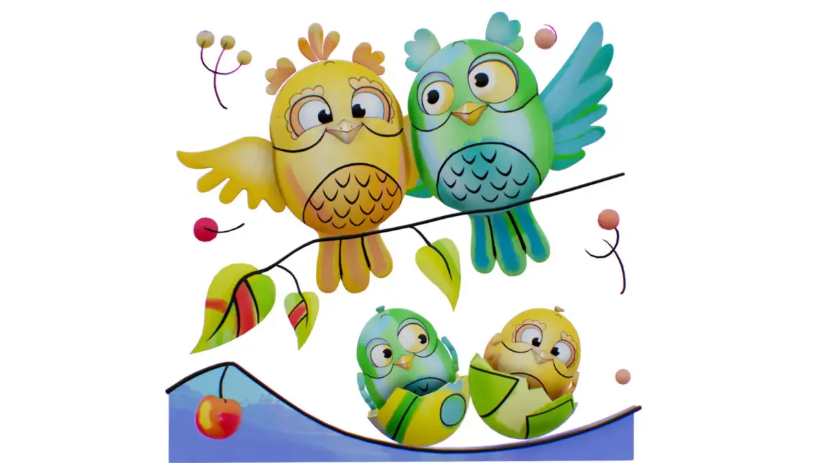 HomeCatalogOwl Family Scenery - Owls Famillar Bird Animal - Chick Baby Low-poly 3D model