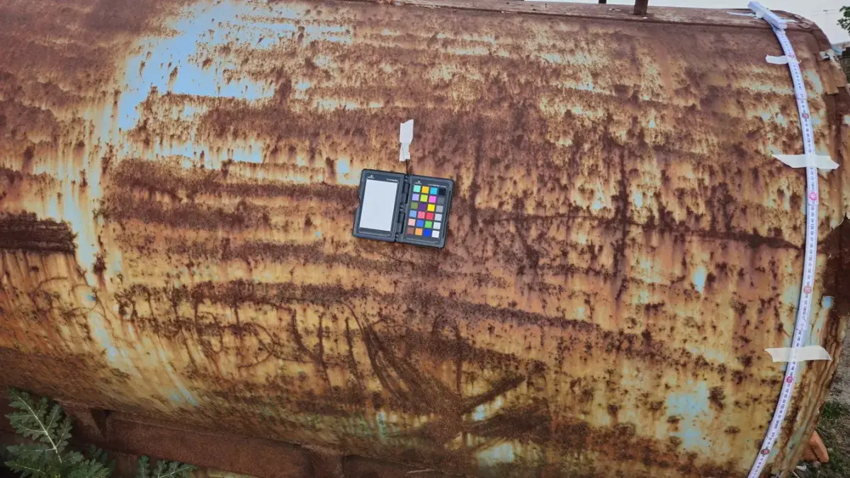 A photoreal PBR material scanned from a weathered industrial tank showing layered oxidation, orange‑brown rust blooms, and turquoise underpaint peeking through, perfect for post‑apocalyptic scenes, ship hulls, and heavy machinery props. The surface features long vertical streaks, granular corrosion clusters, and unique scar patterns that read convincingly at hero‑asset distances without obvious repeats when tiled responsibly. Delivered with Basecolor, Normal, Roughness, Metallic, AO, and Height/Displacement, the set is calibrated for physically accurate response in Blender, Unreal Engine, Unity HDRP/URP, and Substance tools, with 8K masters and 4K LODs for optimization. Height data preserves pitted rust mounds and subtle paint depressions, enabling strong parallax, tessellation, or micro‑shadowing for close‑ups and cinematic lighting. Ideal for environment artists building refineries, scrapyards, rail cars, and coastal infrastructure where rich color variation and directional weathering add story and realism fast.