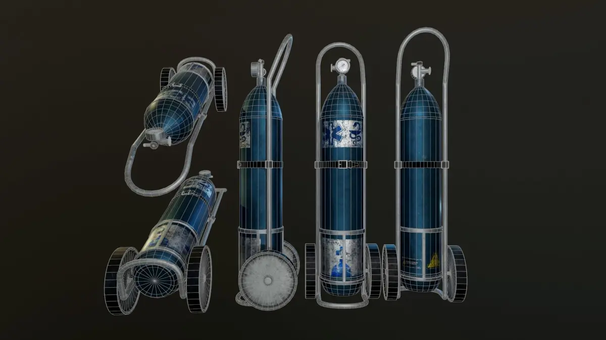 3D Model Oxygen Cylinder ready for use in the game or for visualization , including Low poly 3D model , material , UV Unwrapping , Lightmap , PBR texture .