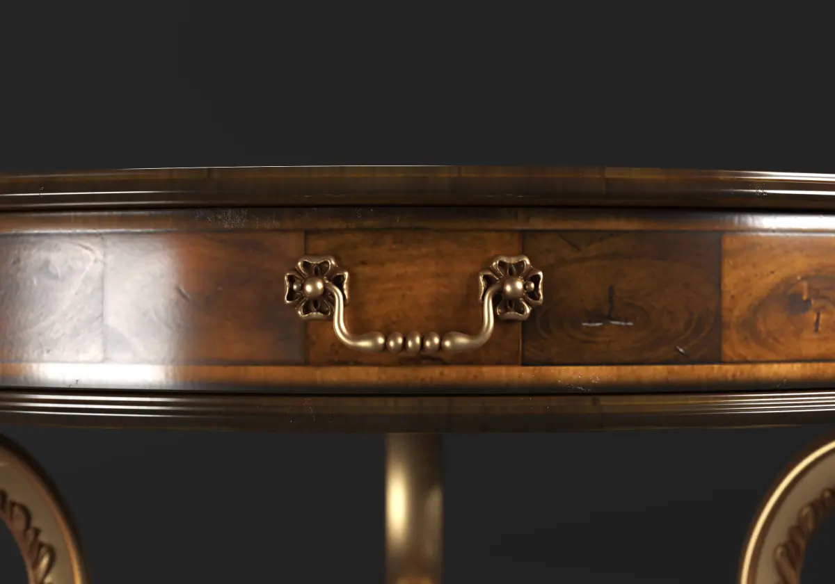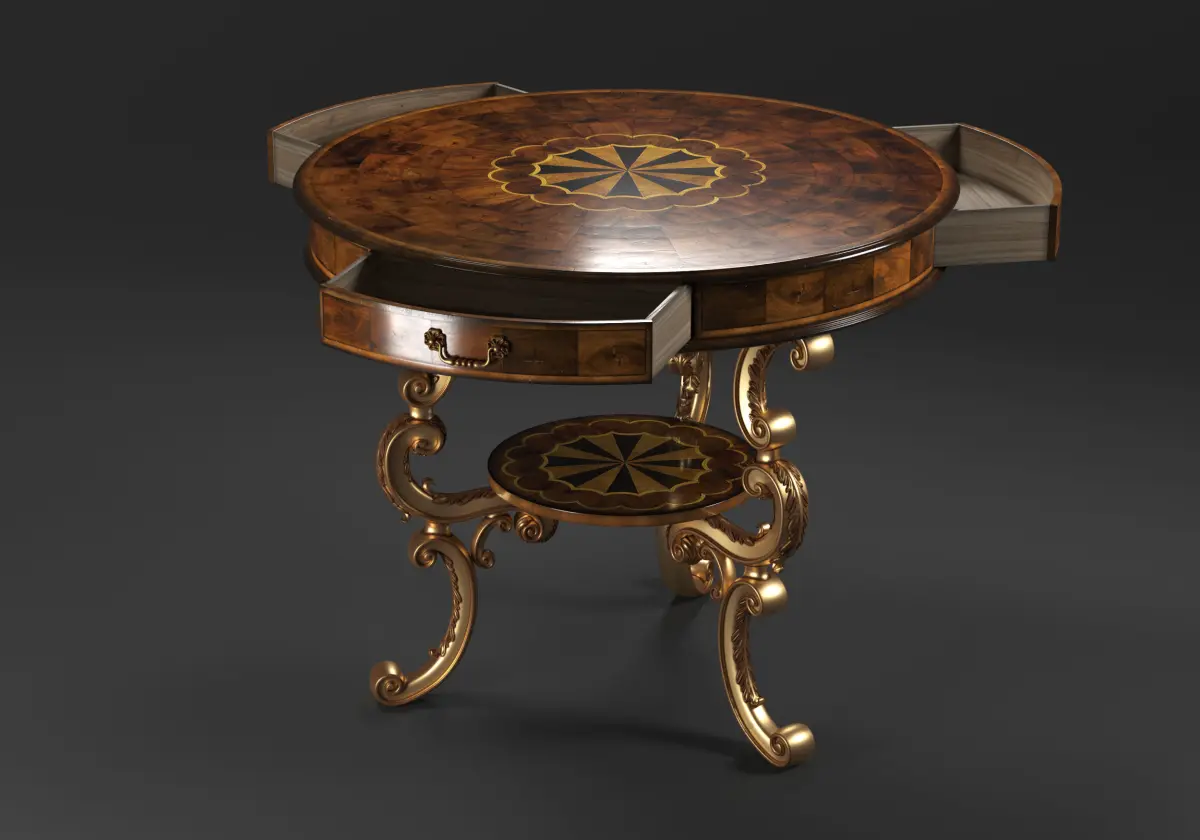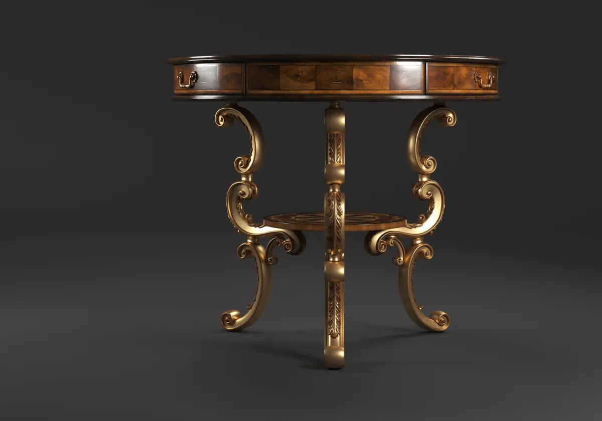 Rococo style Oyster round table 3d model on brass base (high poly)