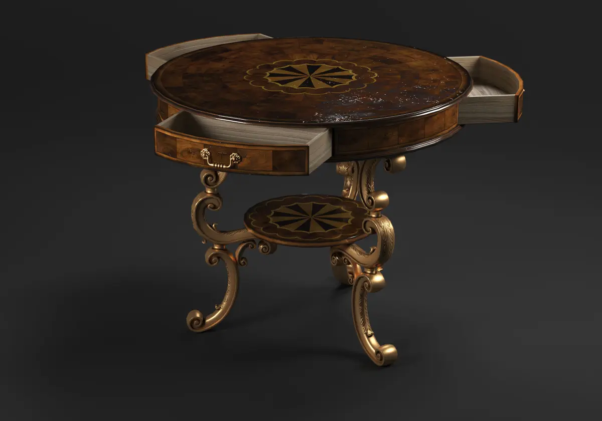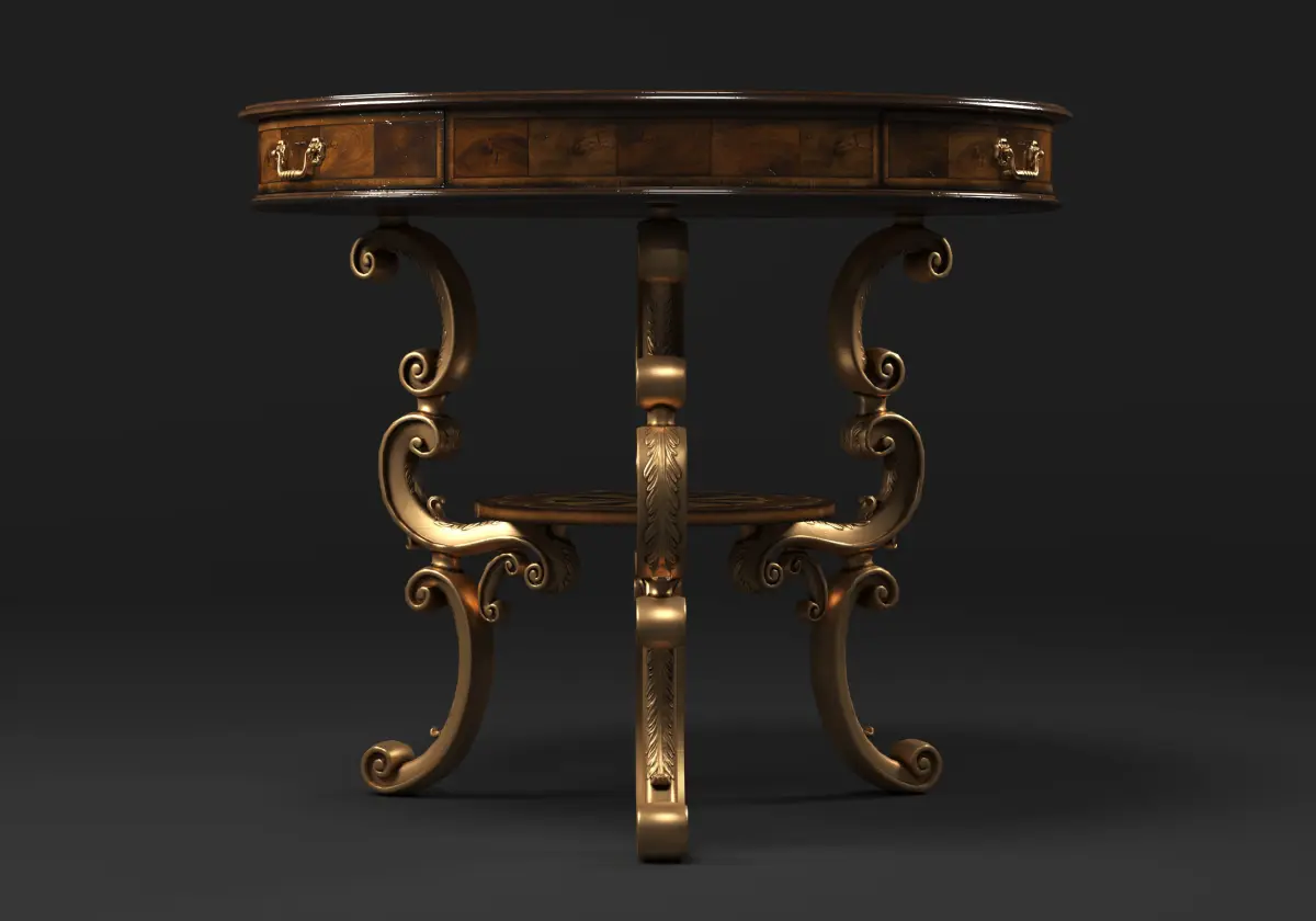 Rococo style Oyster round table 3d model on brass base (low poly)