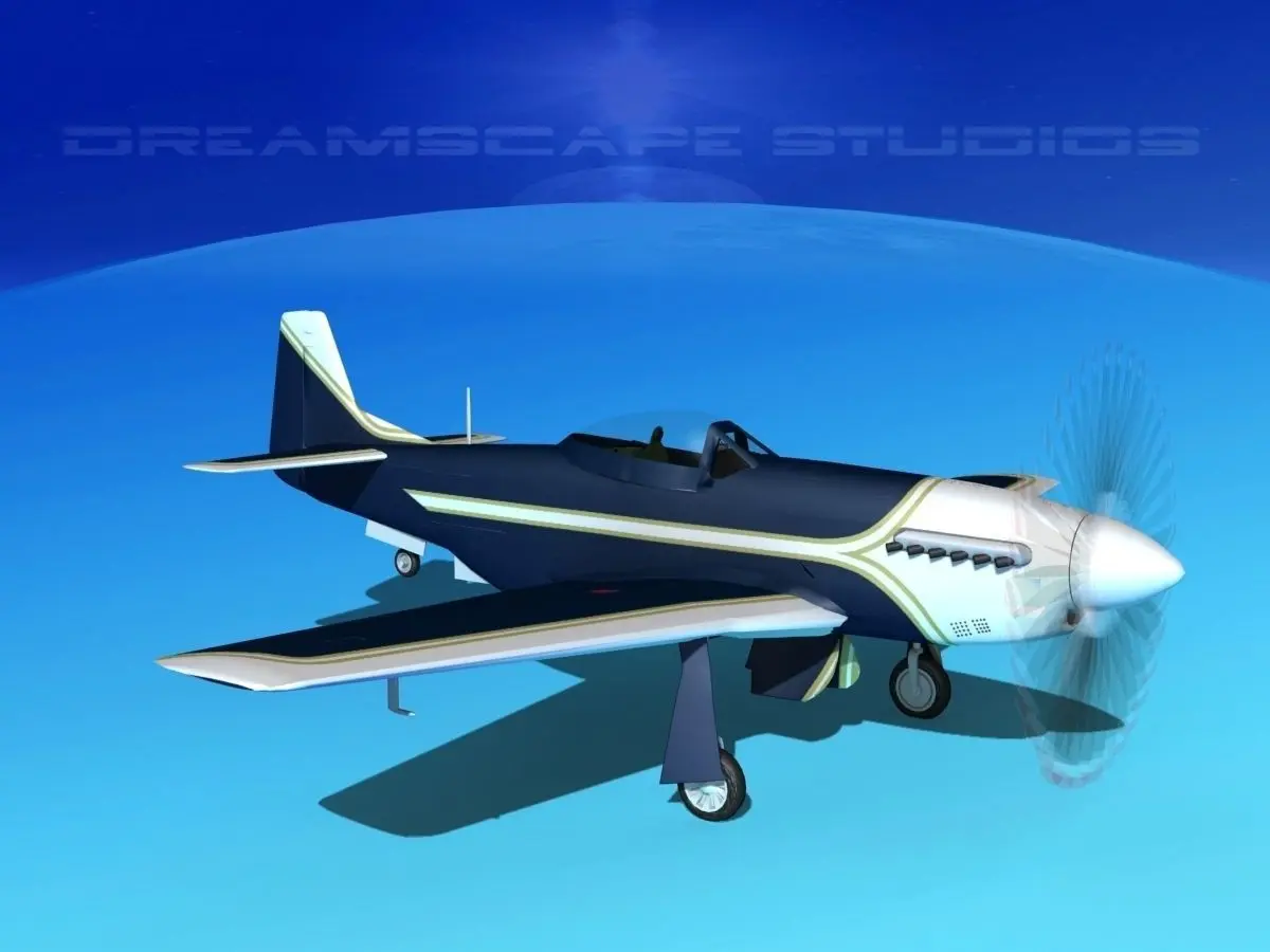 This Mustang model was originally developed for the Discovery Channel “Showdown Air Combat”. It is built very near to scale and is fully textured. This model is detailed to include cockpit, engine, cowlings, engine mounts, seat and radio equipment are modeled. Controls, instrument panels and many cranks and switches are modeled in the cockpit. Many features are animateable including ailerons, flaps, rudder, elevators, main and tail landing gear and doors, and the cockpit canopy opens. Propellers are animated.