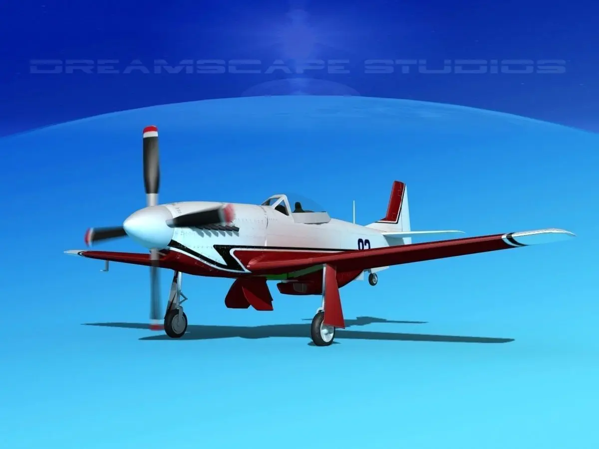 This Mustang model was originally developed for the Discovery Channel “Showdown Air Combat”. It is built very near to scale and is fully textured. This model is detailed to include cockpit, engine, cowlings, engine mounts, seat and radio equipment are modeled. Controls, instrument panels and many cranks and switches are modeled in the cockpit. Many features are animateable including ailerons, flaps, rudder, elevators, main and tail landing gear and doors, and the cockpit canopy opens. Propellers are animated.