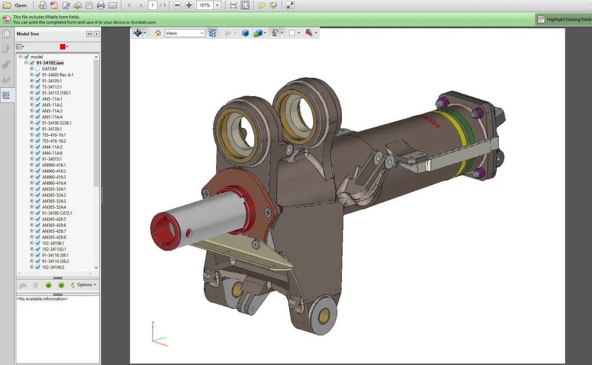 All parts; including nuts, bolts, washers etc; accurately modeled to original North American Aviation drawings and AN, MS, NASM specifications. The package includes the CAD model in DWG (2018), STL, STP, and Parasolid X-B formats; a 3D PDF of the model, and a 2D PDF of the parts list as generated. NAA reference drawing 91-34102.Fully detailed internal components.
