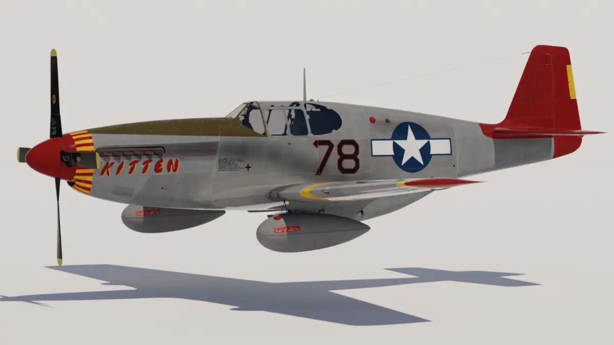 A P-51B/C of the 302nd Squadron, 332nd Fighter Group. The famous Red Tails, flown by the Tuskegee Airmen.This aircraft represents Kitten as flown by the then Captain Charles E. McGee in Italy Summer 1944.