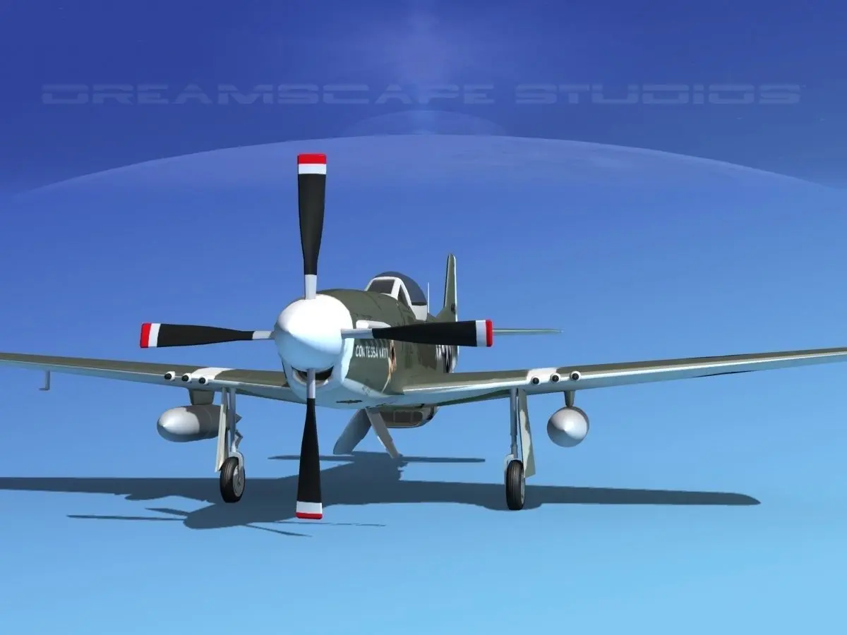 This Mustang model was originally developed for the Discovery Channel. It is built very near to scale and is fully textured. This model is detailed to include cockpit. The engine, cowlings, mounts, seat and radio equipment are modeled. Controls, instrument panels and many cranks and switches are modeled in the cockpit. Many features are animateable including ailerons, flaps, rudder, elevators, main and tail landing gear and doors, propeller, and the cockpit canopy opens.