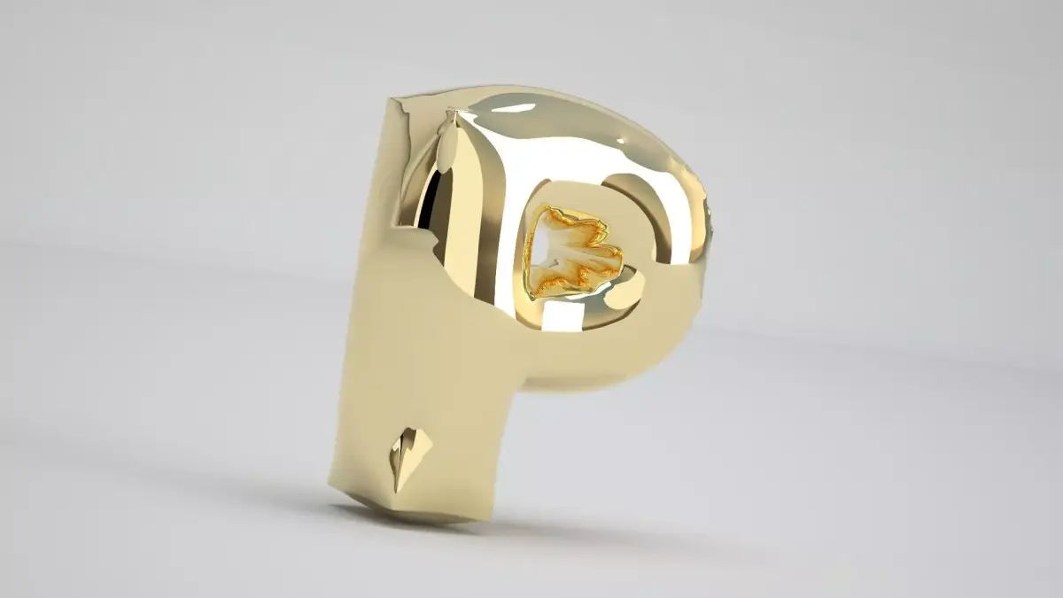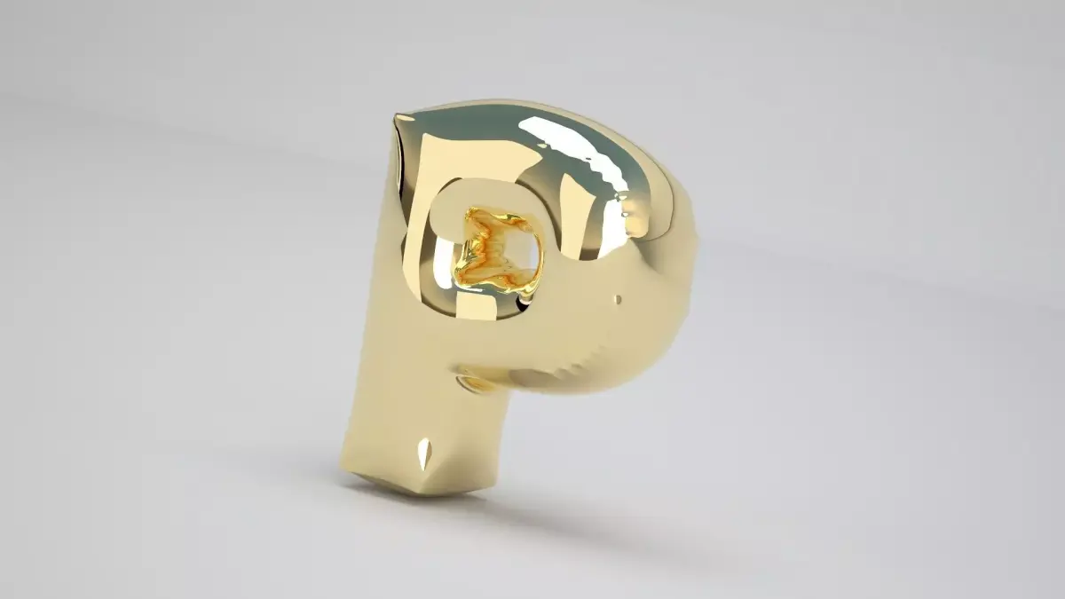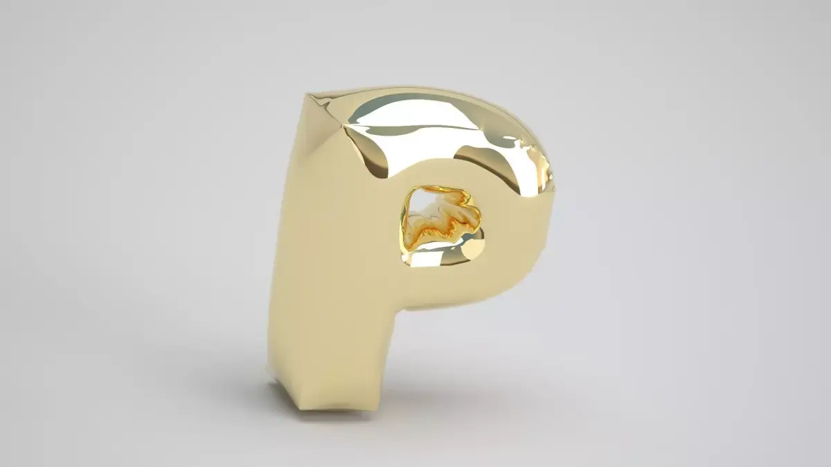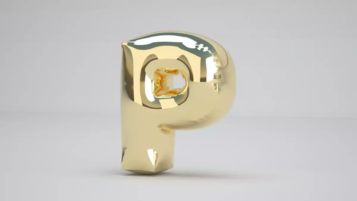 Realistic 3D Model OF Balloon P Alphabet Gold
