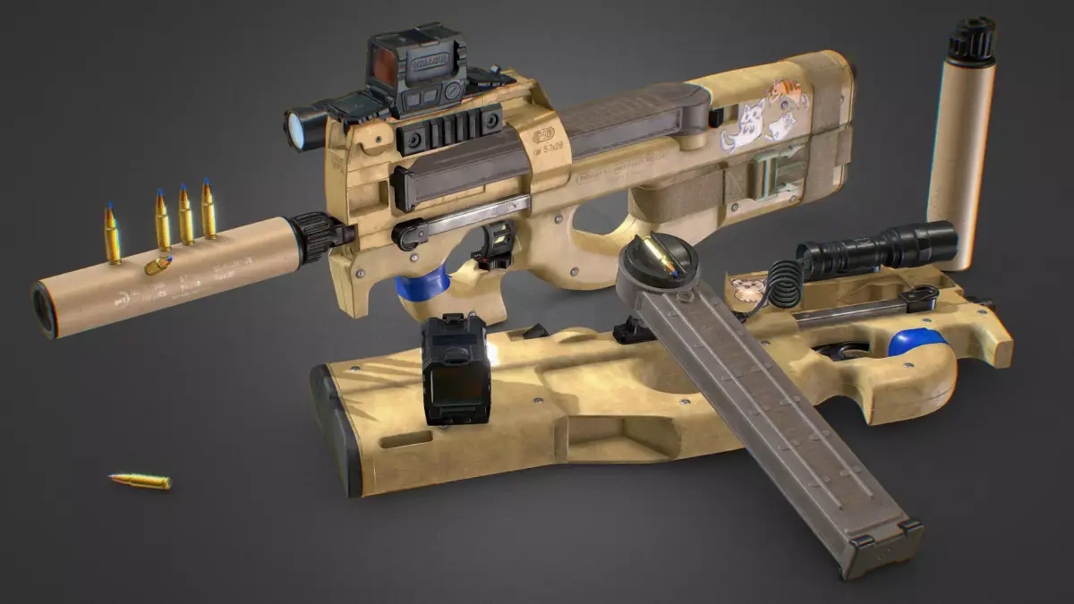 Game ready mesh and textures for FN P90, Scope, Flashlight, Tactical Slings and Suppressor.