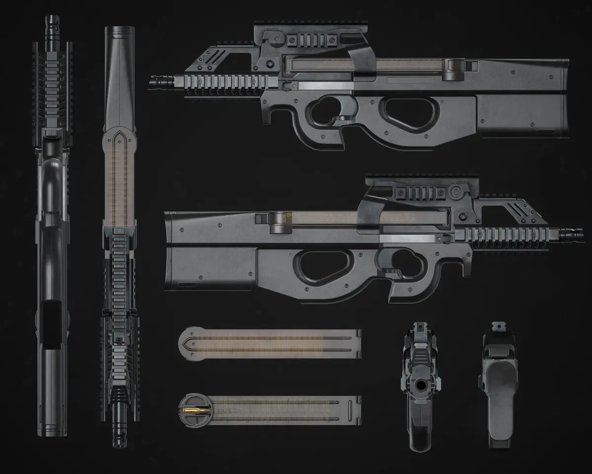 - gun with loaded magazine ( 12421 verts, 23990 Tris)