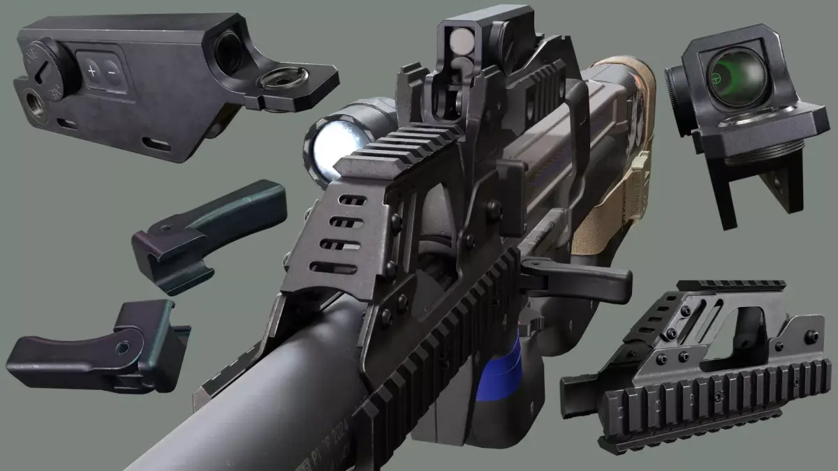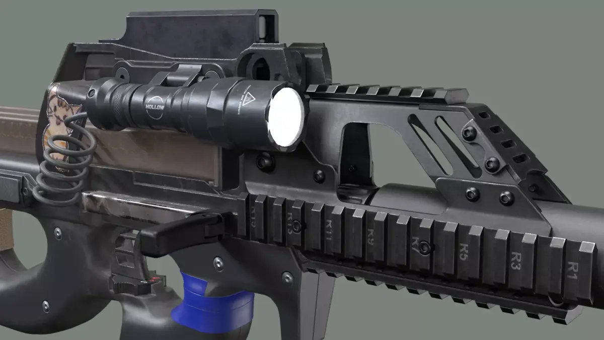 Game ready mesh and textures for P90, RIS, Colimator Sight, Charging Handle, Flashlight, Tactical Slings and Suppressor.