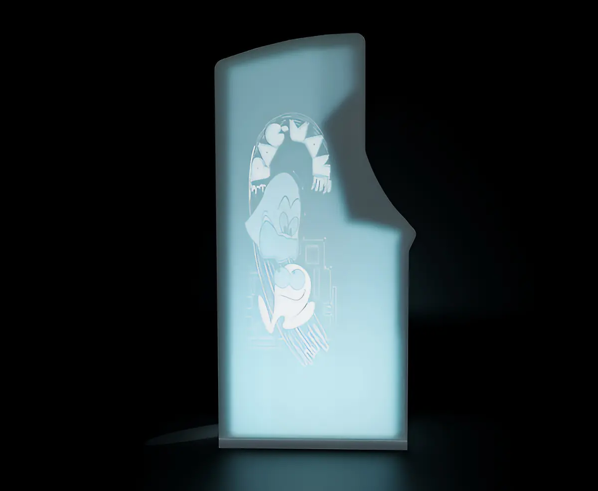 This is a 2 piece set, composed of the arcade cabinet itself and it's base. I've shown an example in the pictures how we can light up this piece, but take into consideration that we can use the light according to your own creativity (different colors, intensity, position, etc.).