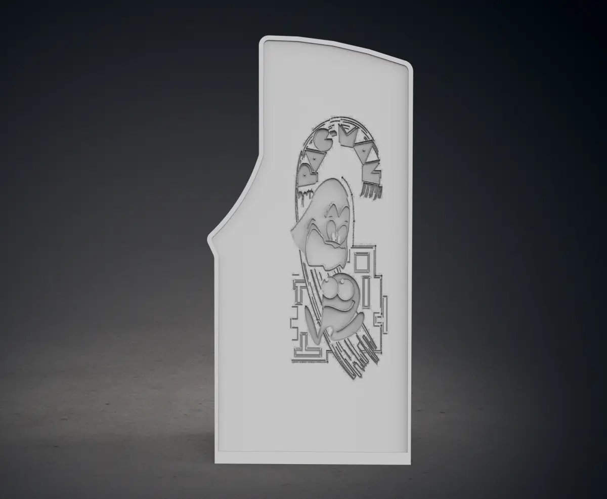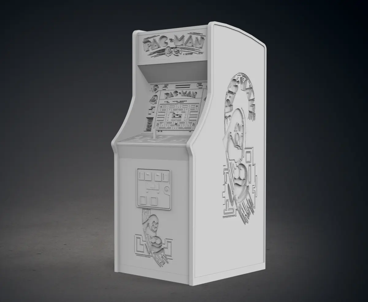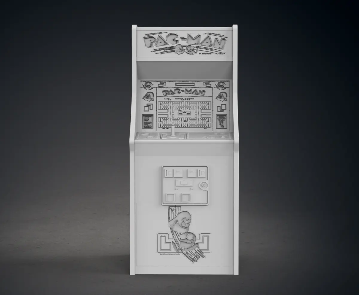 This piece is a themed Pac-Man Arcade Cabinet.