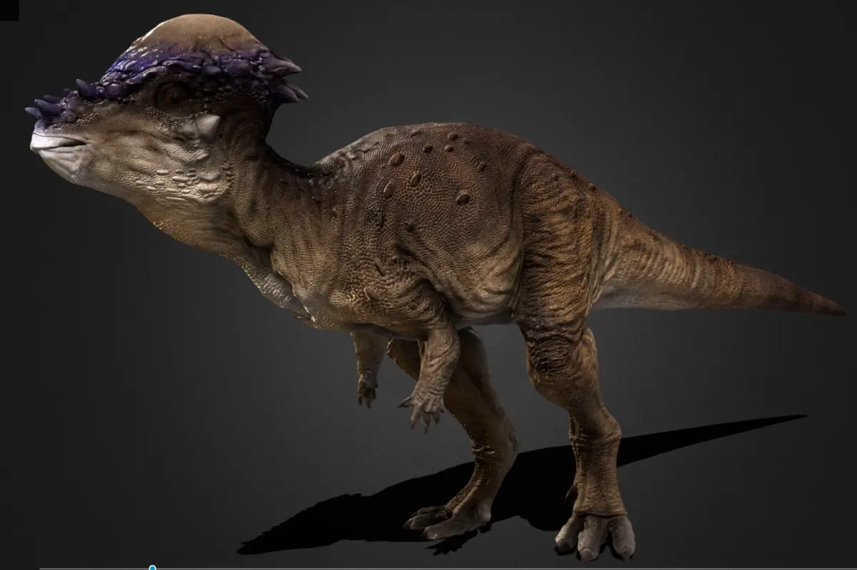 Pachycephalosaurus was a unique herbivorous dinosaur that lived during the Late Cretaceous period, around 70 million years ago. Native to what is now North America, it was known for its thick, domed skull, which could reach up to 10 inches in thickness. This distinctive feature has led scientists to believe it may have been used for head-butting in dominance displays or territorial disputes. Growing up to 15 feet long and weighing nearly 1,000 pounds, Pachycephalosaurus had a bipedal stance, short arms, and a strong, rigid tail for balance. Despite its intimidating skull, it primarily fed on soft vegetation, fruits, and possibly seeds. Its mysterious behavior and iconic head structure make it one of the most recognizable dinosaurs of its time.