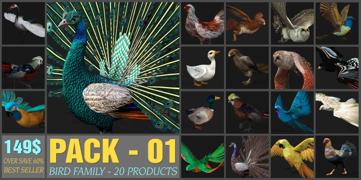 • FBX Blender• FBX 3DSMAX• FBX MAYA• Blend-Blender 3.6• iAvatar- Iclone8_CC4• DiffuseMap PNG 2048 X 2048• NormalMap PNG 2048 X 2048• OpacityMap PNG 2048 x 2048• AoMap PNG 2048 x 2048• DisplacementMap PNG 2048 x 2048Motions: 05_Acrobatic, Fly, FlySlow, Landing, Play• Rigging: Yes• Plugins (Addon): No• Customize products as required: NoPheasantBird Model Motions B1,2,3,4 Use the same video describing Typical Motions. They only differ in Color and Material.