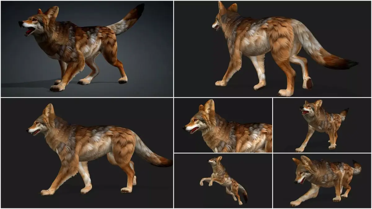 Motions: 13- Atk,Bow,Eat,Howling1,Howling2,Idle,Jump,Play,Run,Runslow,Smell,Talk ,Walk