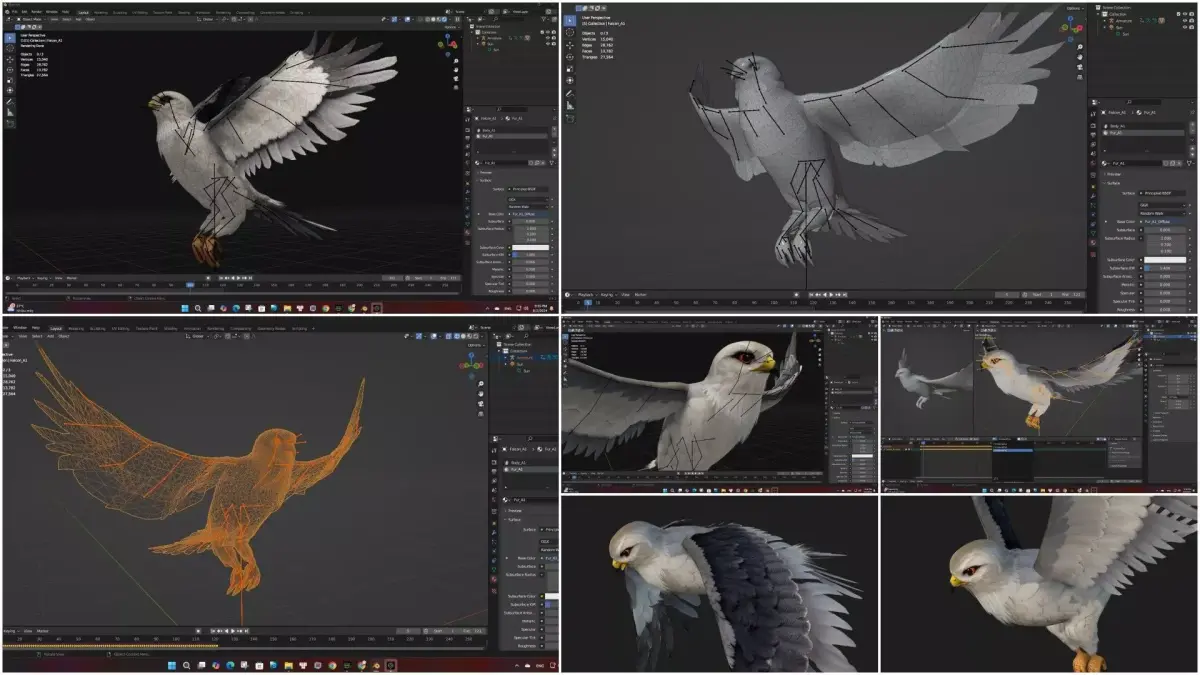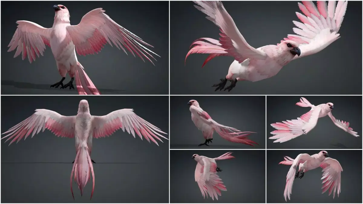 Motions: 19- Cheep1,Cheep2, Feather_Pecking,Fly01,Fly02,Fly03,Fly04,Flyup,Idle,Landing1,Landing2,Play,Run1,Run2,RunFly,Sleep,Stand,Walk, WalkARound