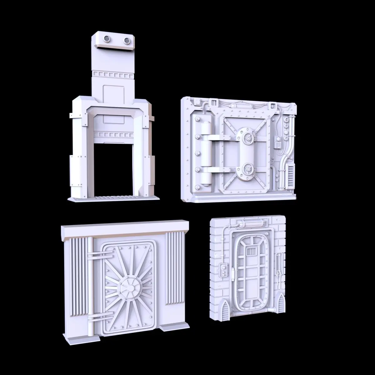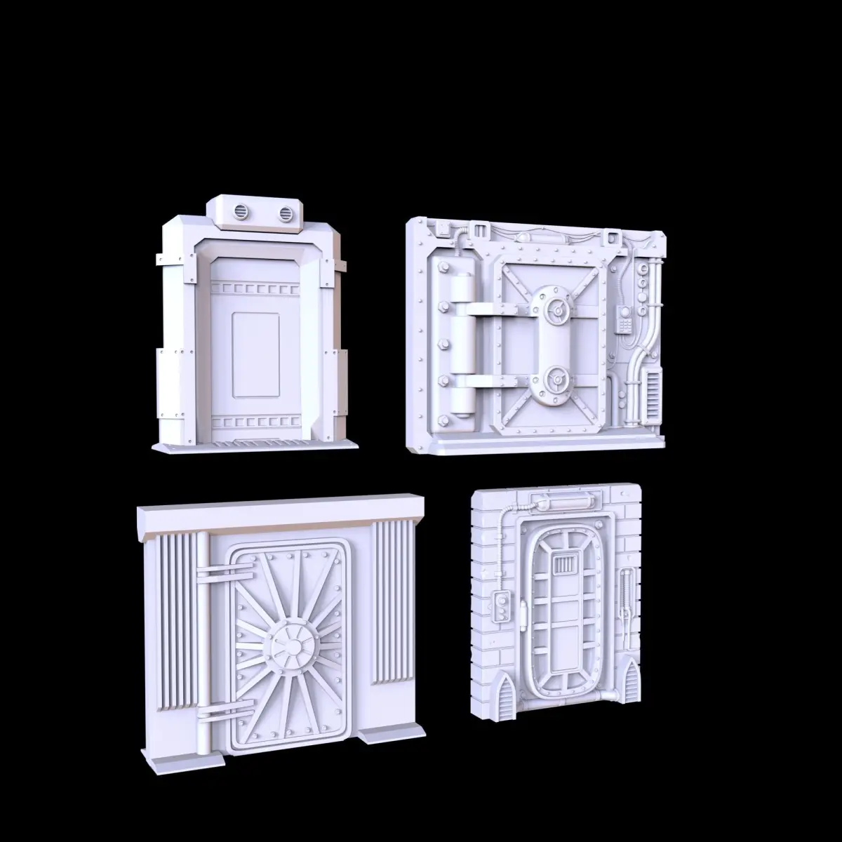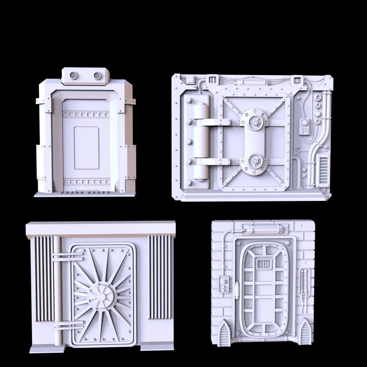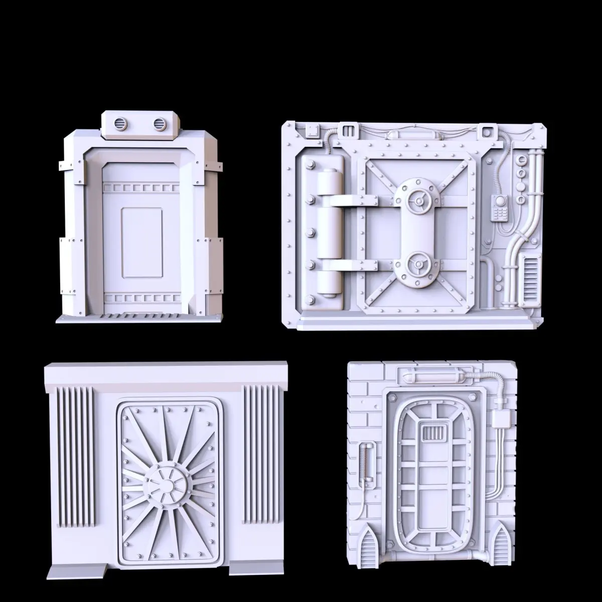 Scatter terrain. This set contains 4 sci fi doors (5 parts). One of them is openable (see pictures). Checked models, ready to print. I use them for Necromunda and Star Wars games. Models have been prepared and tested for 3D printing. All of them are 60mm tall.