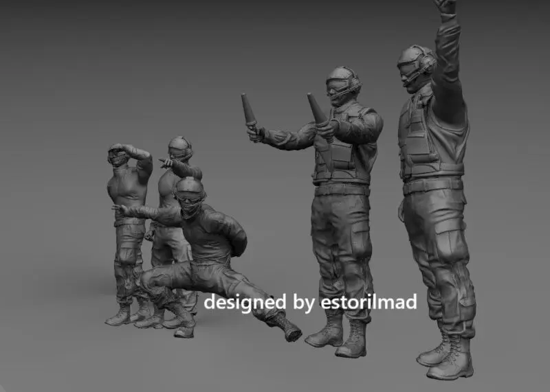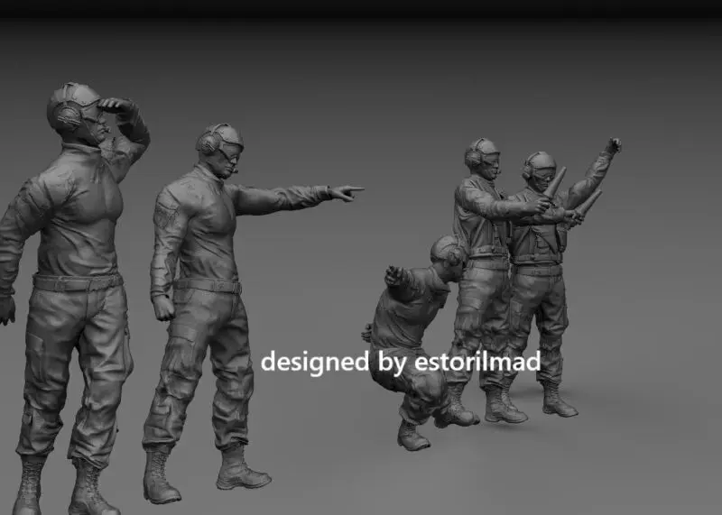 5 Figura de tripulación de portaviones en accionideal para complementar una maqueta con un aviónla figura es totalmente escalable a muchas escalas5 fichero stl