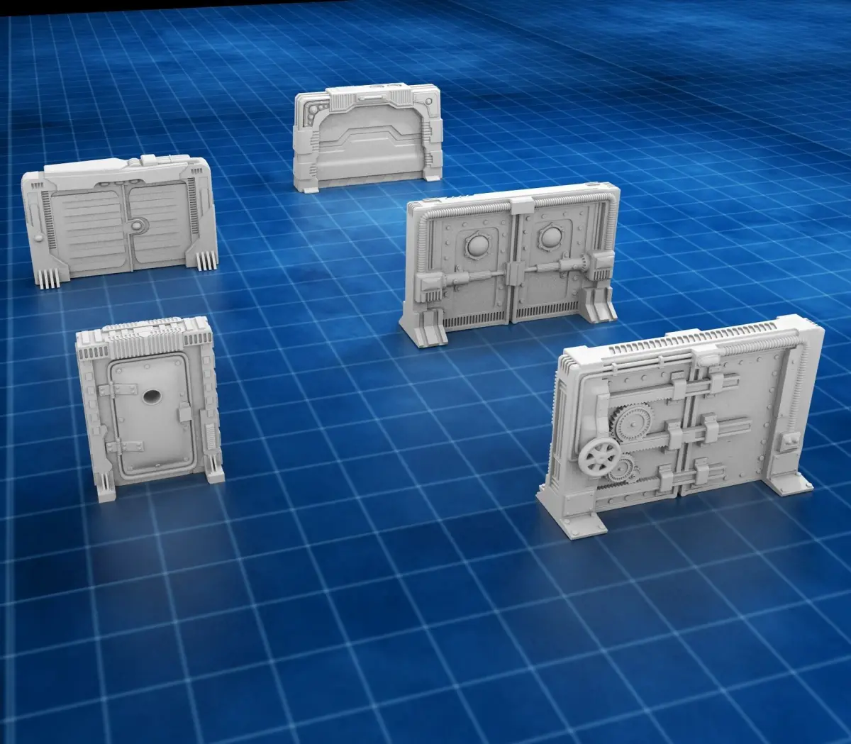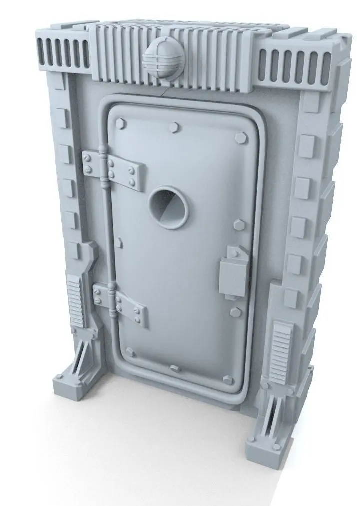Scatter terrain. This set contains 5 sci fi doors. Checked models, ready to print. I use them for Necromunda and Star Wars games. Models have been prepared and tested for 3D printing. All of them are 60mm tall.