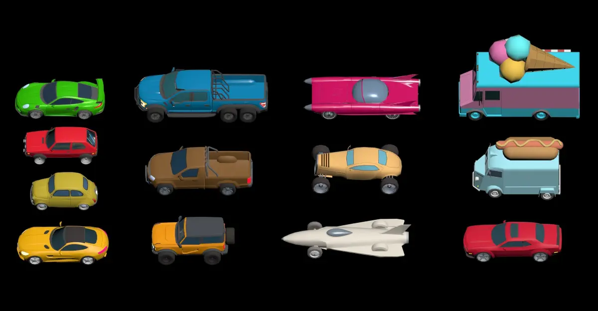 Pack cars Hypercasual. Low-poly 3D models, Hypercasual Models. Has materials ID
