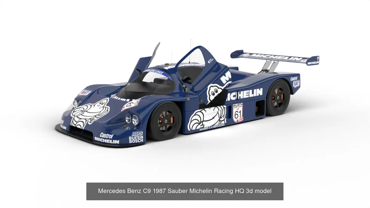 3.Mercedes Benz C9 1987 Sauber Michelin Racing HQ 3d model:Vertices 1 093 671 Faces 1 070 091