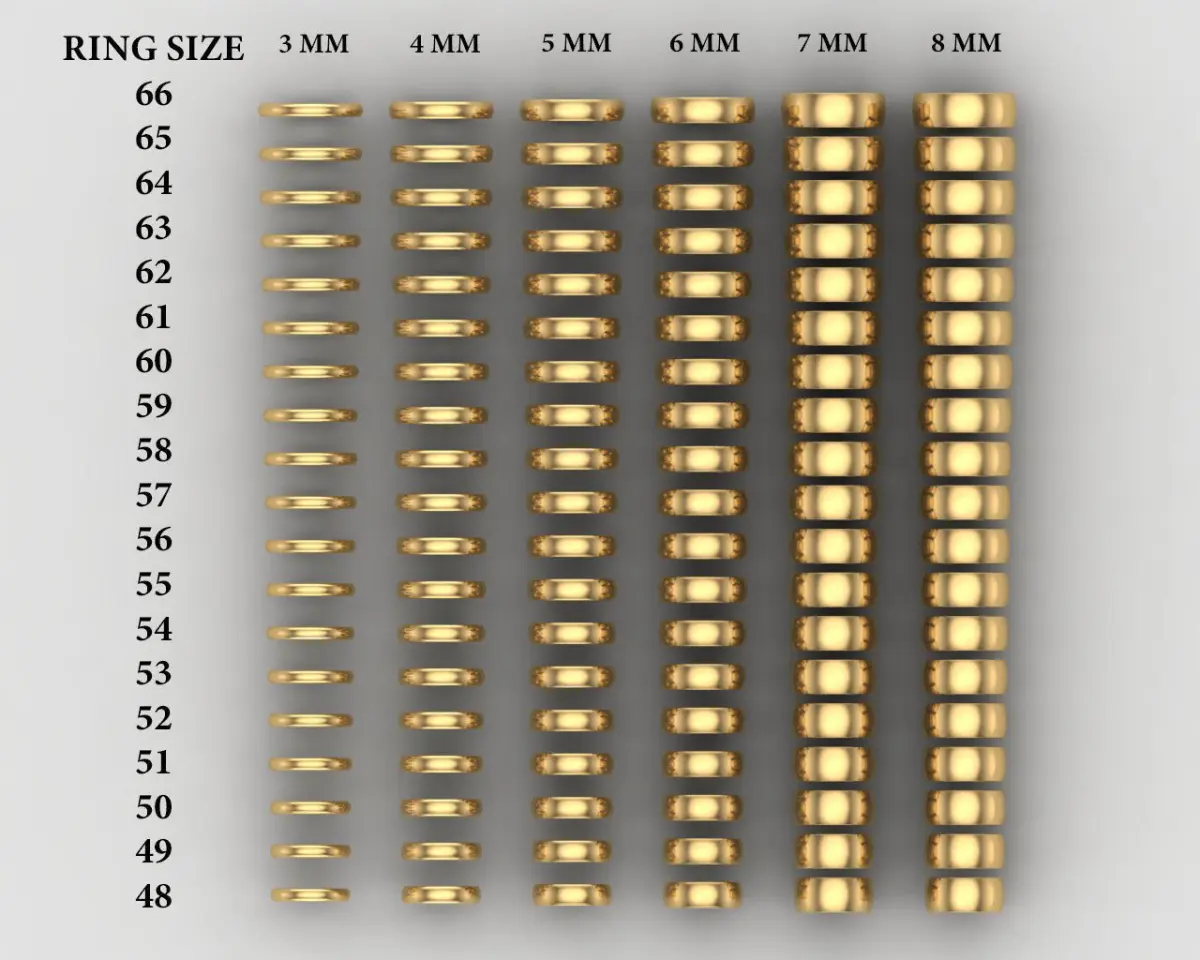 Ring size from 48 to 66 EU.