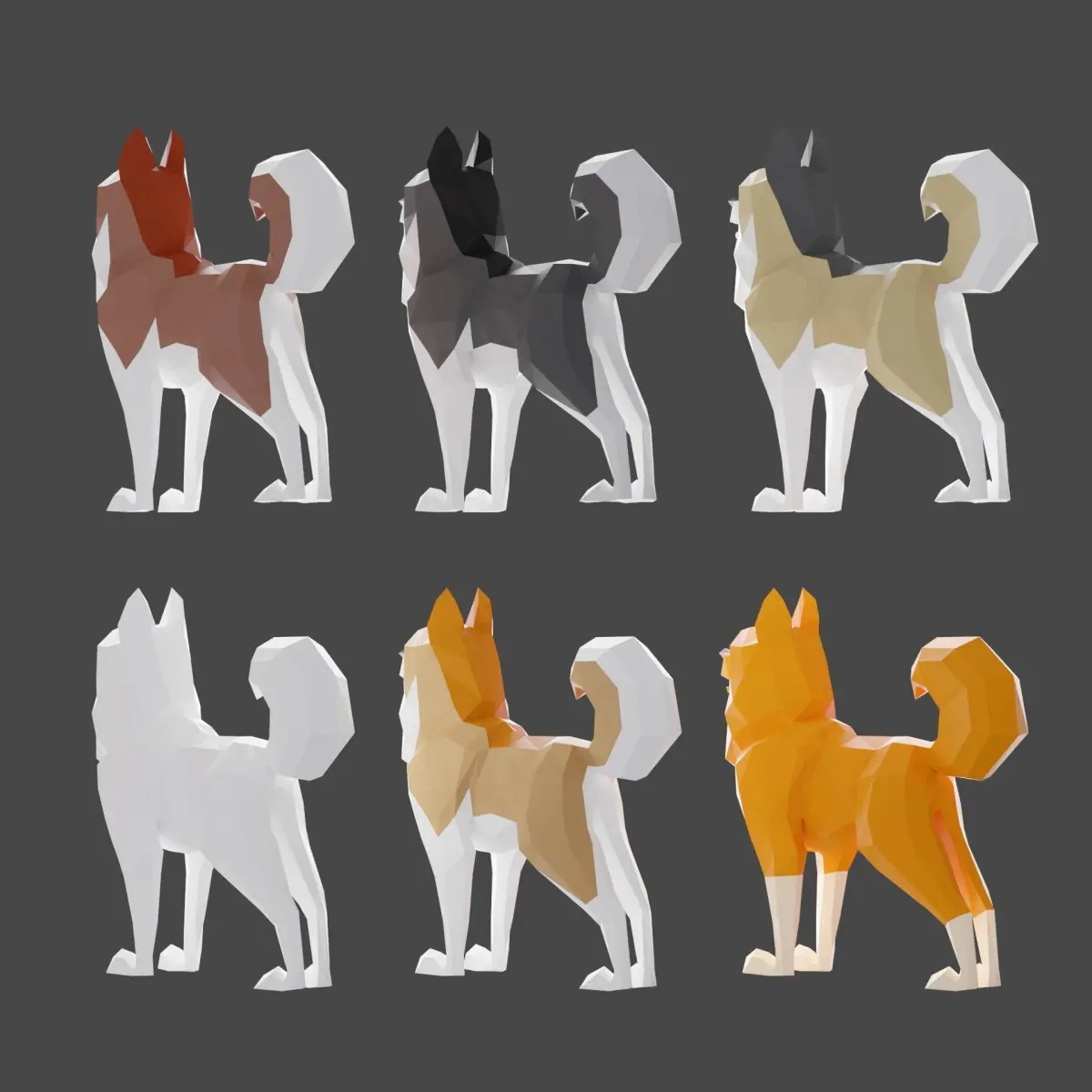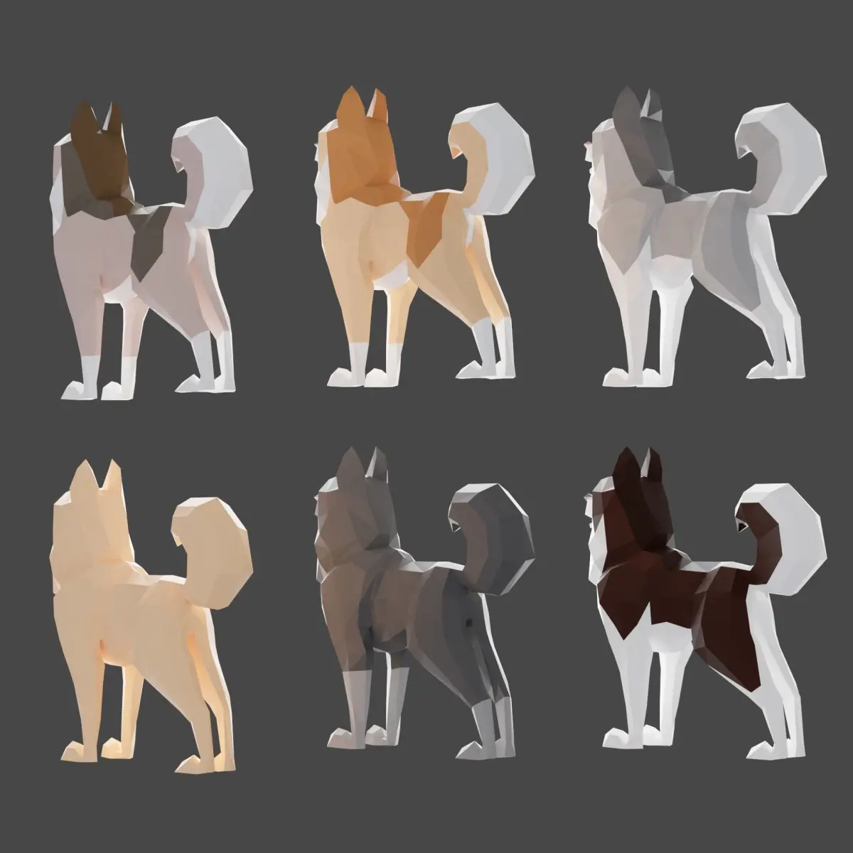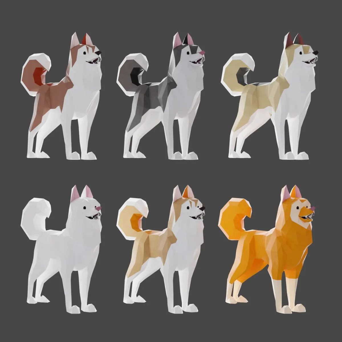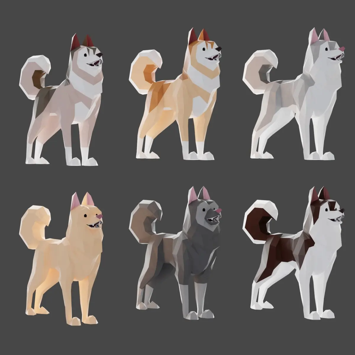 HomeCatalogPack of 12 low poly stylized husky dogs Low-poly 3D model
