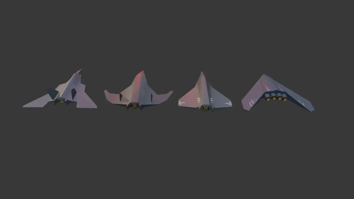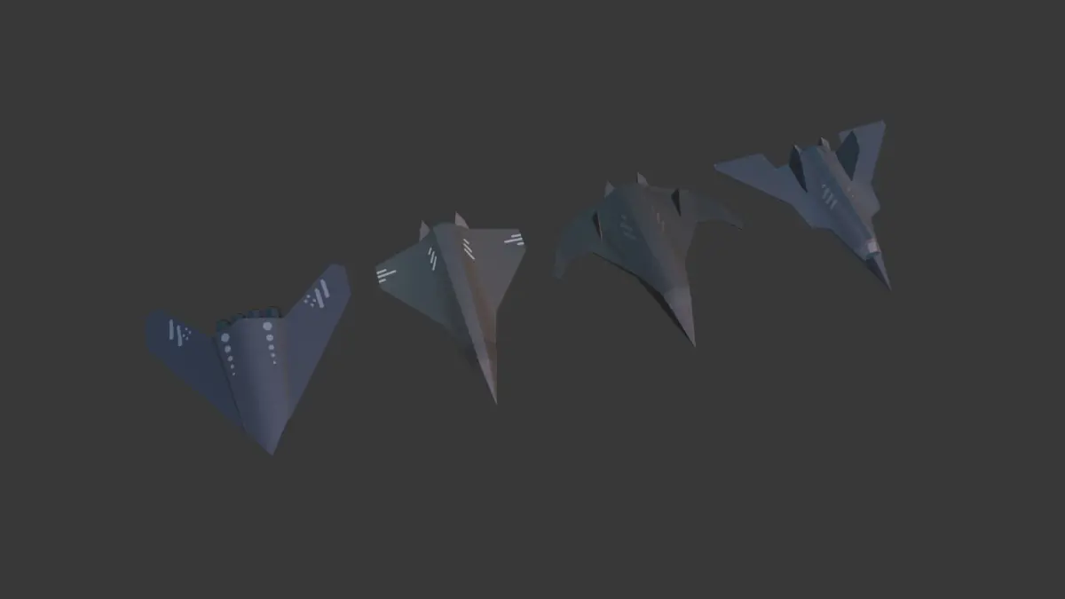 In total, the 4 models have 912 polygons and 480 vertices, on average each one is 150 polygons or less.Contains:-Individual models and packs of the 4 planes-Individual handmade textures of each plane-Fixed bugs found-Individual and joint files.-Sample animation-Normals and vertices recalculated for more optimization-Prepared and ready to use, in unity just place the fbx and then the textures and they will automatically be placed, in godot it will probablyimport well but you must individually place the materials.