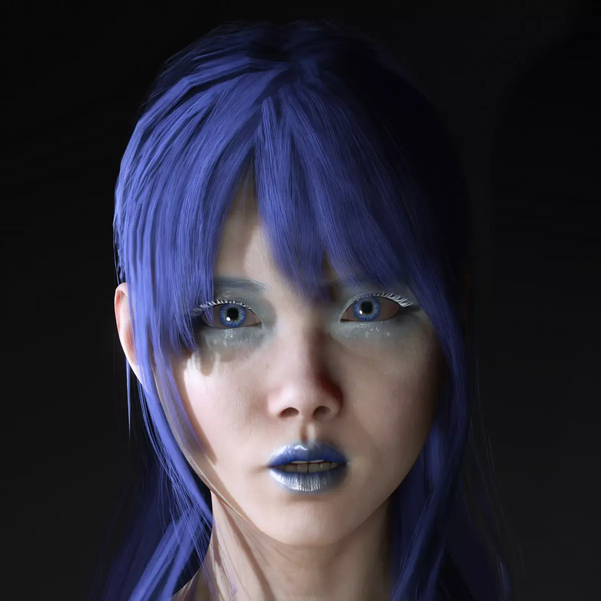 The Blue Vision – futuristic beauty with a delicate lace dress, ideal for sci-fi or surreal projects.