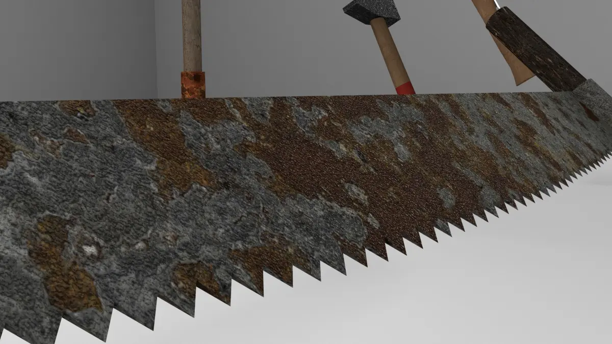 Collection of 9 different rusty farm tools, including shovel, saws, axe, hammer, rake, sickle. The set is finished in Autodesk Maya 2019. Rendered in V-Ray 5.0.Polygons - 22963Vertices - 11678Total count of texture files: 34All textures are in PNG 2048x2048