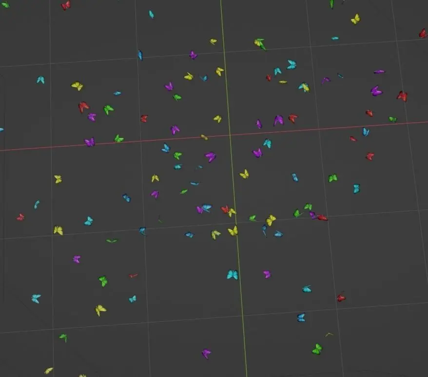 A pack of butterflies with six colors, which are red, green, blue, cyan, purple, and yellow.