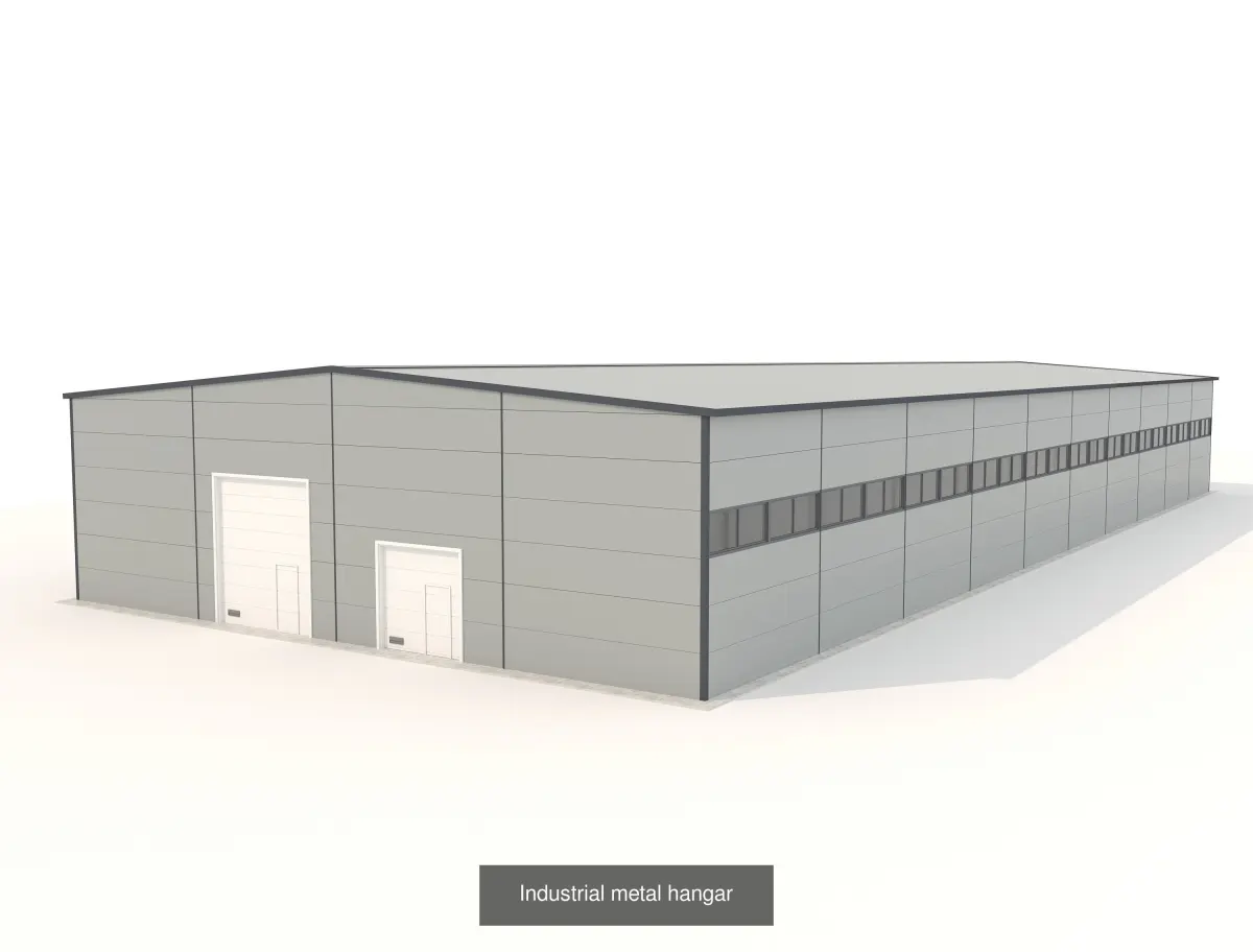 Industrial metal hangar is a high quality models. Models possible to use in any project. Originally modelled in 3ds max 2015. Final images rendered with Corona Render 1.7