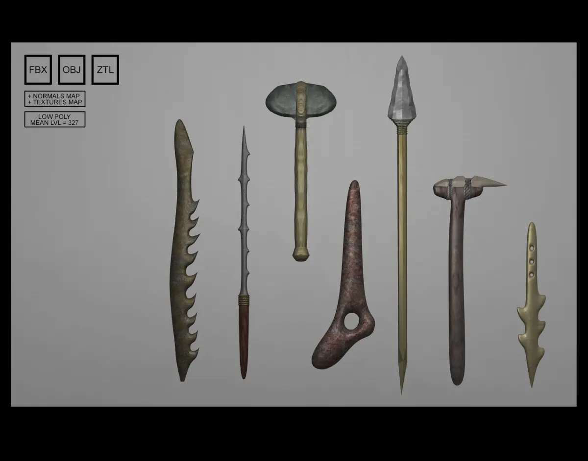 the weapon is made in a low poly variation. The average polygon level is 327.