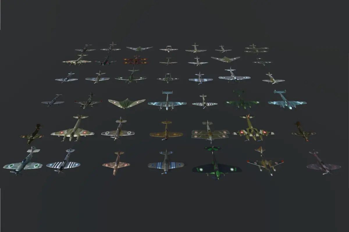 This Pack Has 42 unique war planes.All models are mobile optimized and low poly. all textures are hand painted PBR textures for realism.