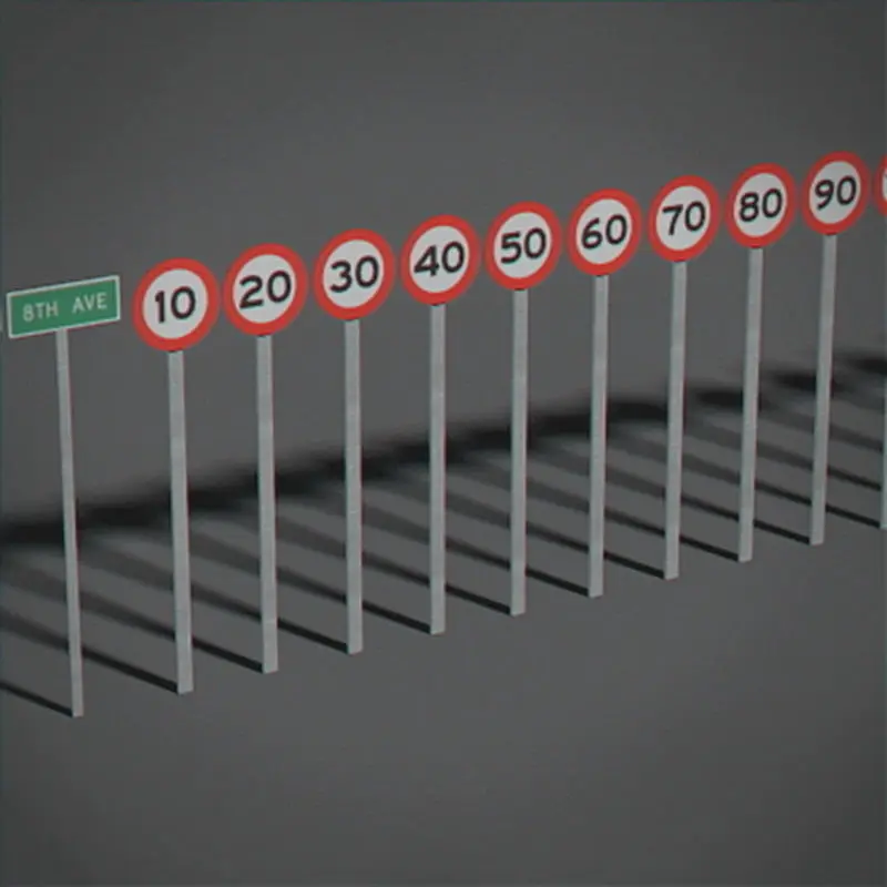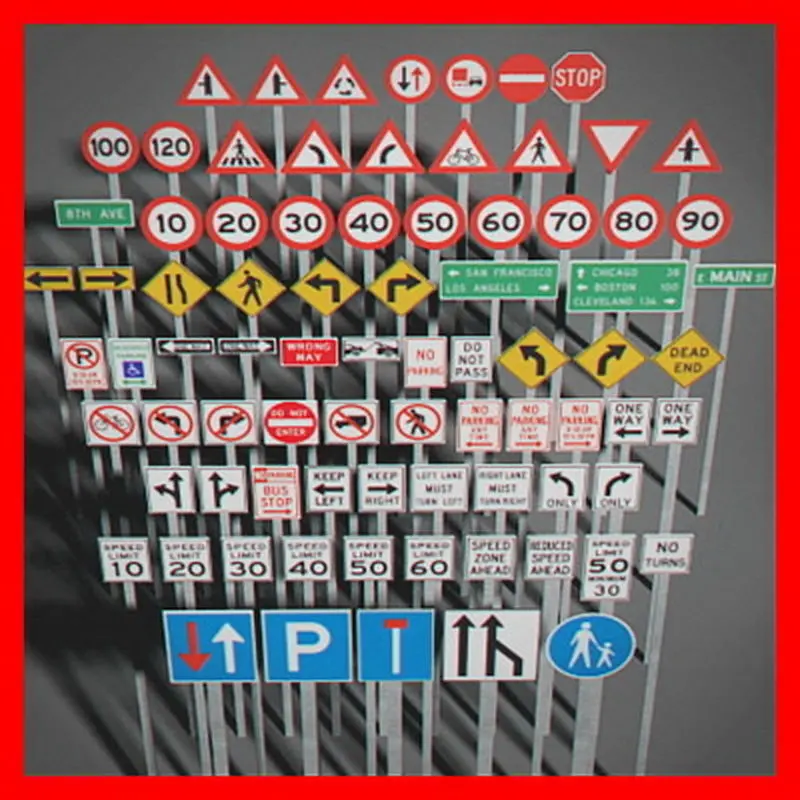 81 street and road signs.