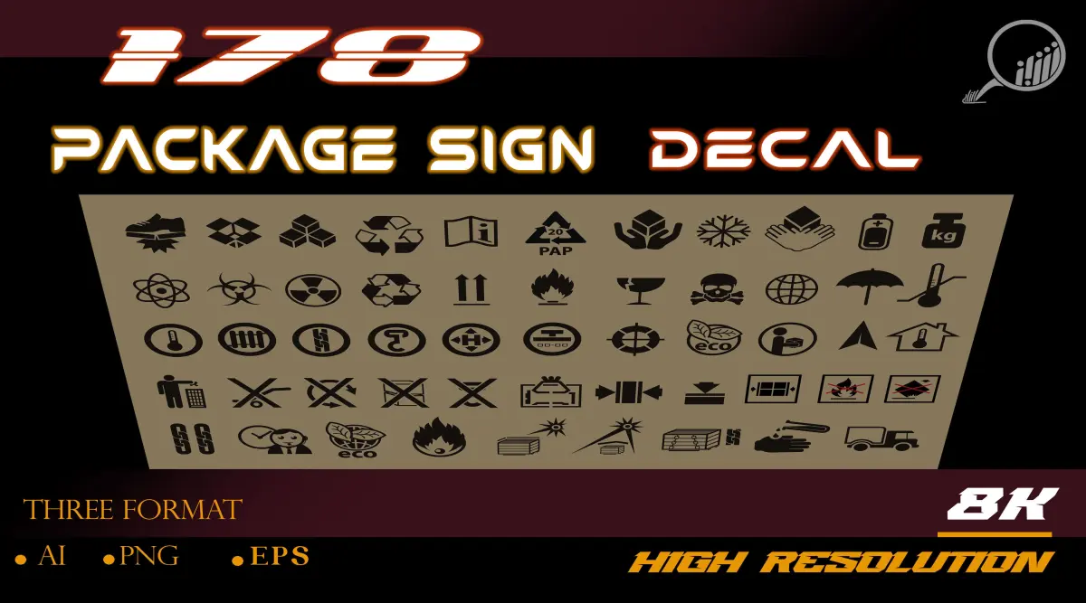 Packaging signs isolated on white background such as FRAGILE, HANDLE WITH CARE, KEEP DRY, THIS SIDE UP, FLAMMABLE, RECYCLED, PACKAGE WEIGHT, DO NOT LITTER, MAX STACK, CLAMP and SLING HERE, and others .The pack of these signs is designed with Illustrator software and is provided to you in ai, eps, and png formats.