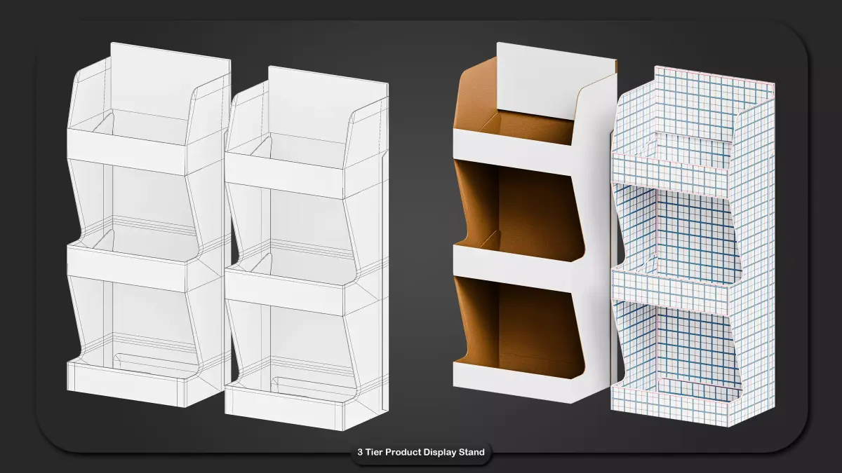 Realistic Packaging Box Set - 3 Tier Display Stand, Giftbox, Gable & Tuck End Boxes