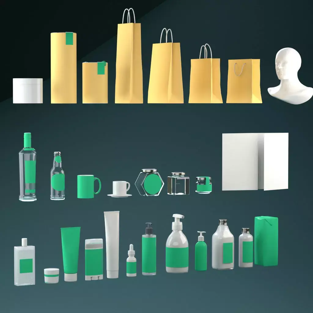 A 28 detailed object bundle for packaging preview.Especially developed for product concept, mockup and 3D visualisation.You can use it for marketing or even game purposes.