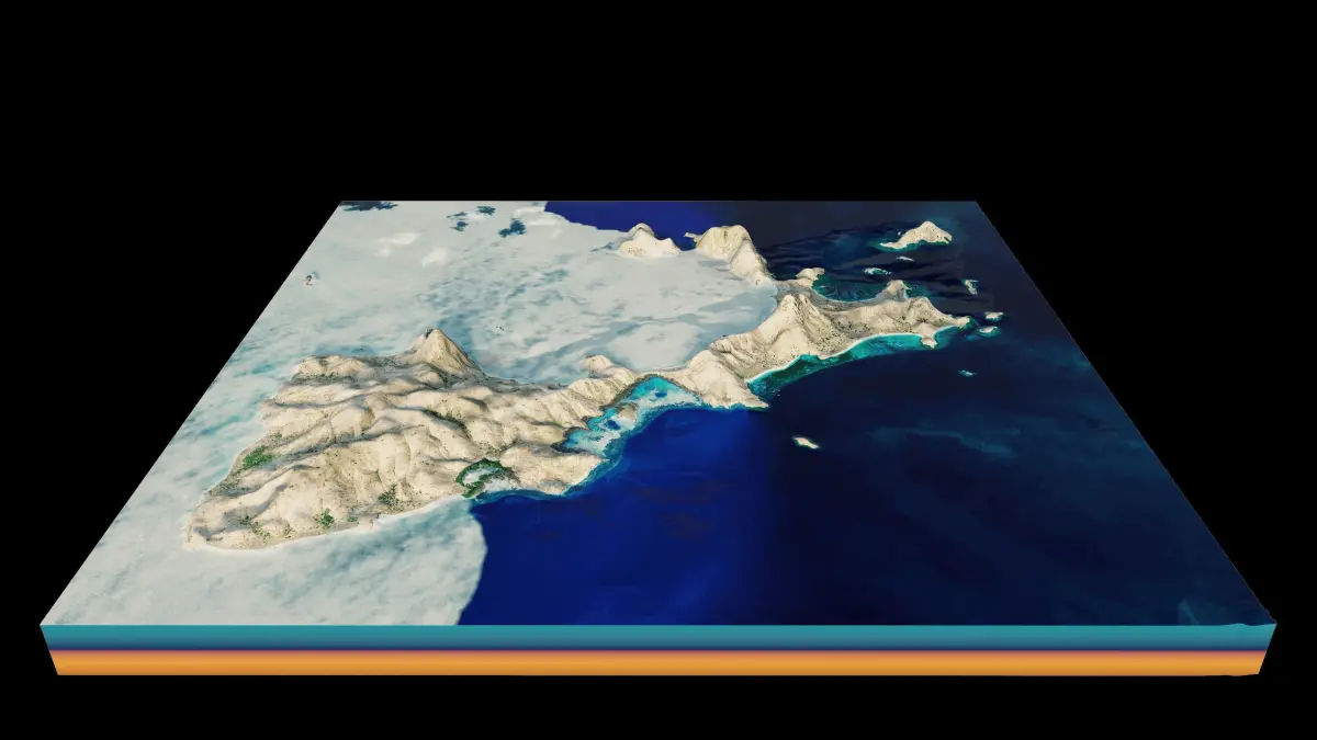 Komodo Island in Indonesia. Padar Island terrain 3d model. 3d model landscape of the island of Padar with its landscape of mountains, beaches and forests