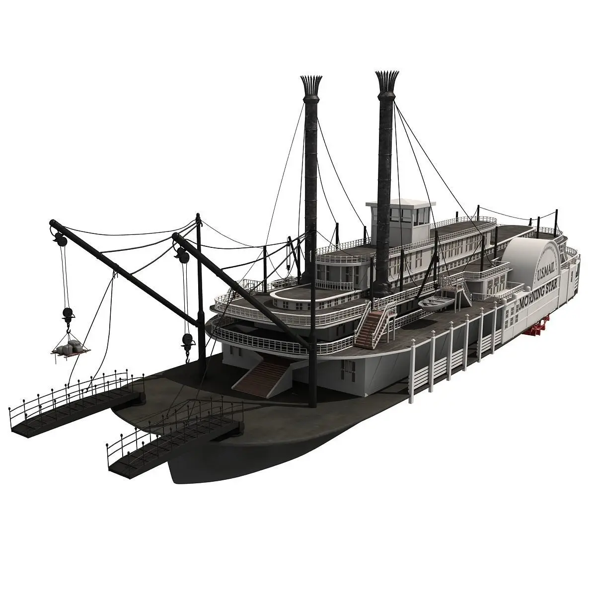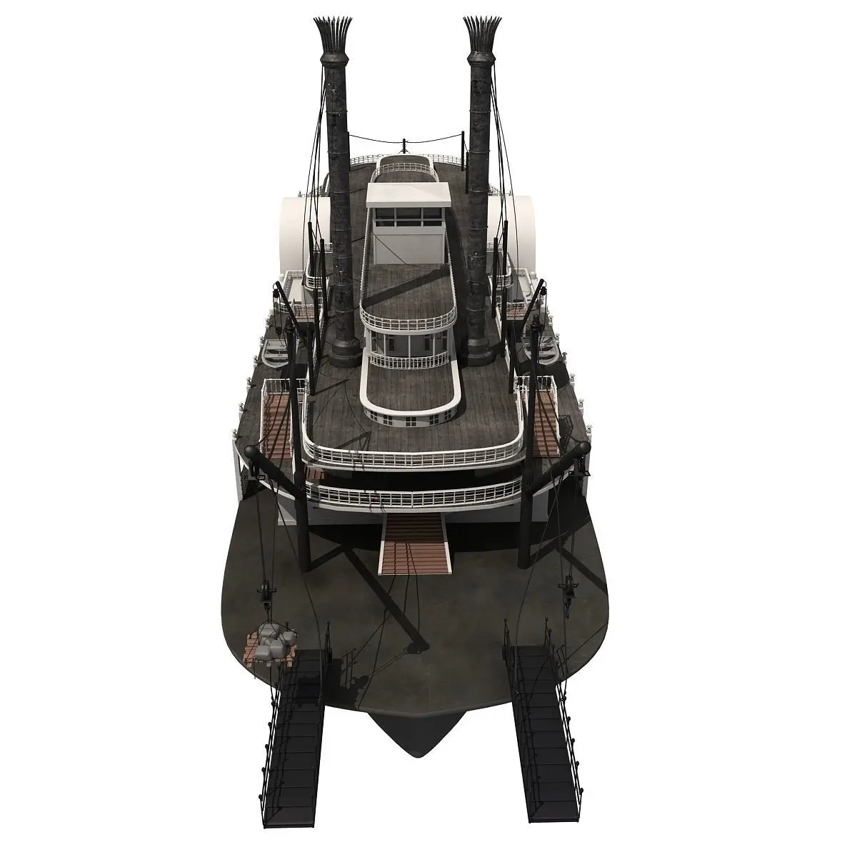 Extremely detailed 3d model of historic paddle steamer river boat.