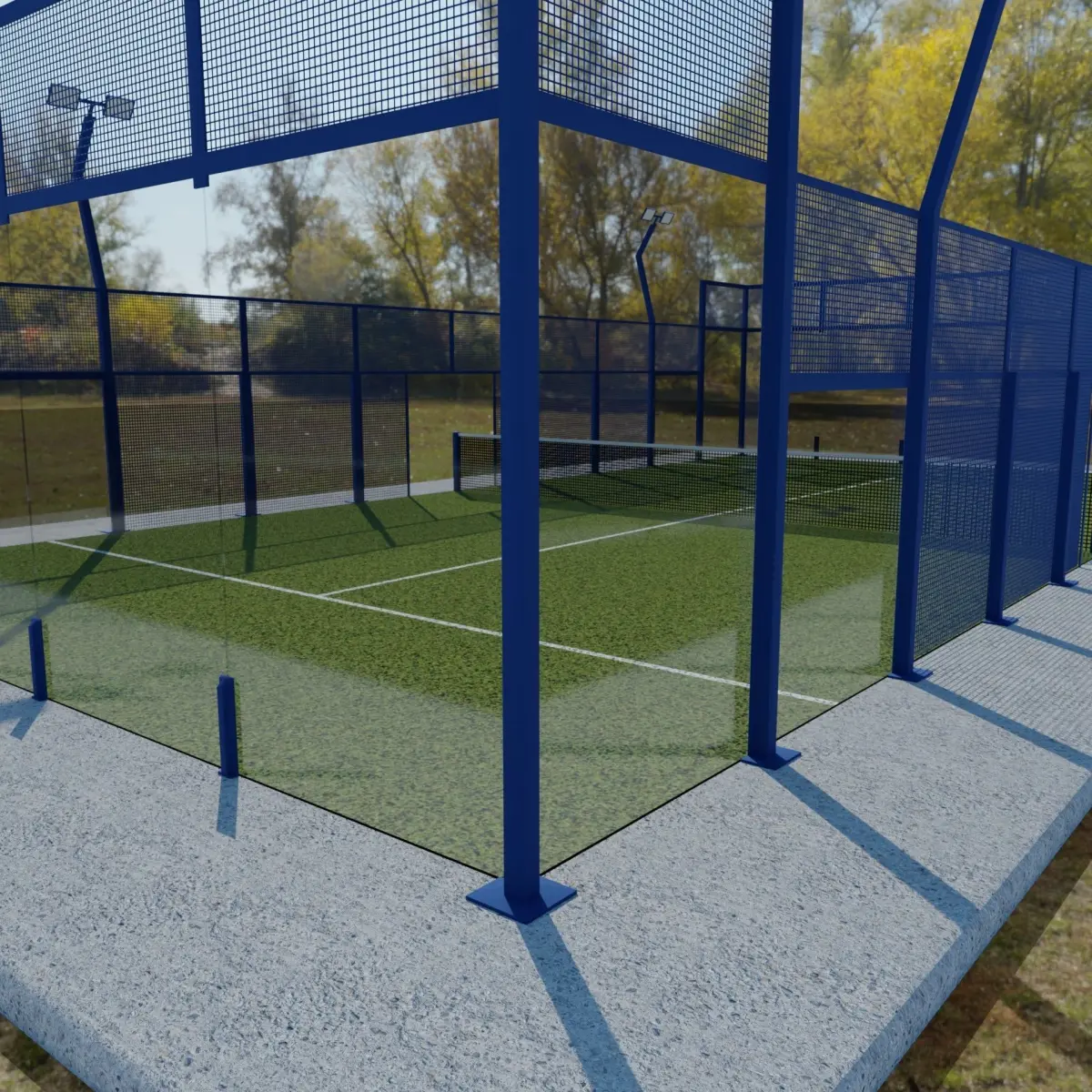 Model of a padel court made in Blender and exported in various other file formats such as .obj, .dae and others. The model is complete with material textures. The model also contains lights so you can use it for night scene renders.