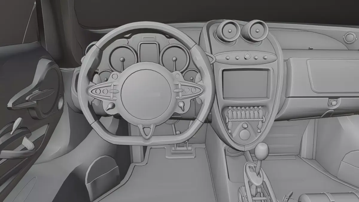 The model includes Body, interior, tires, etc but it's in 1 single object